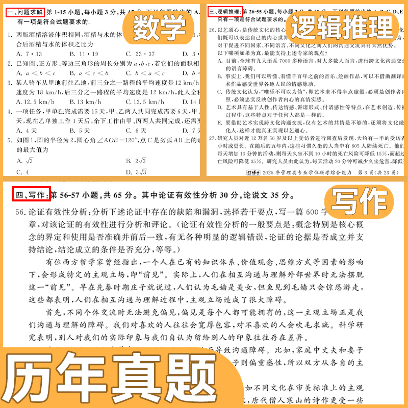 备考2027考研199管理类联考历年真题MBA MPA MPAcc管理学综合能力2016-2025年纸质真题标准答案 搭考研英语二真题晋远红博士官方