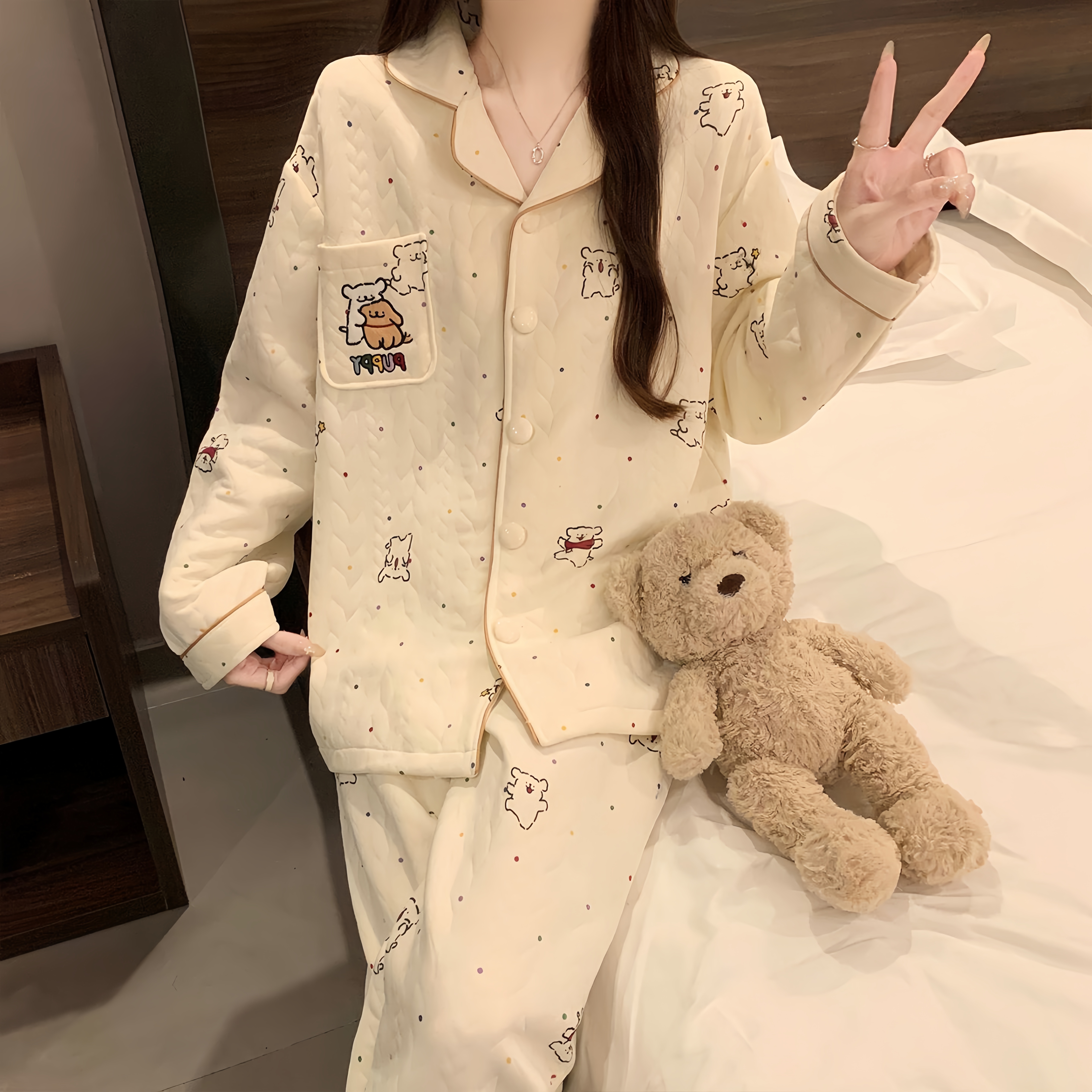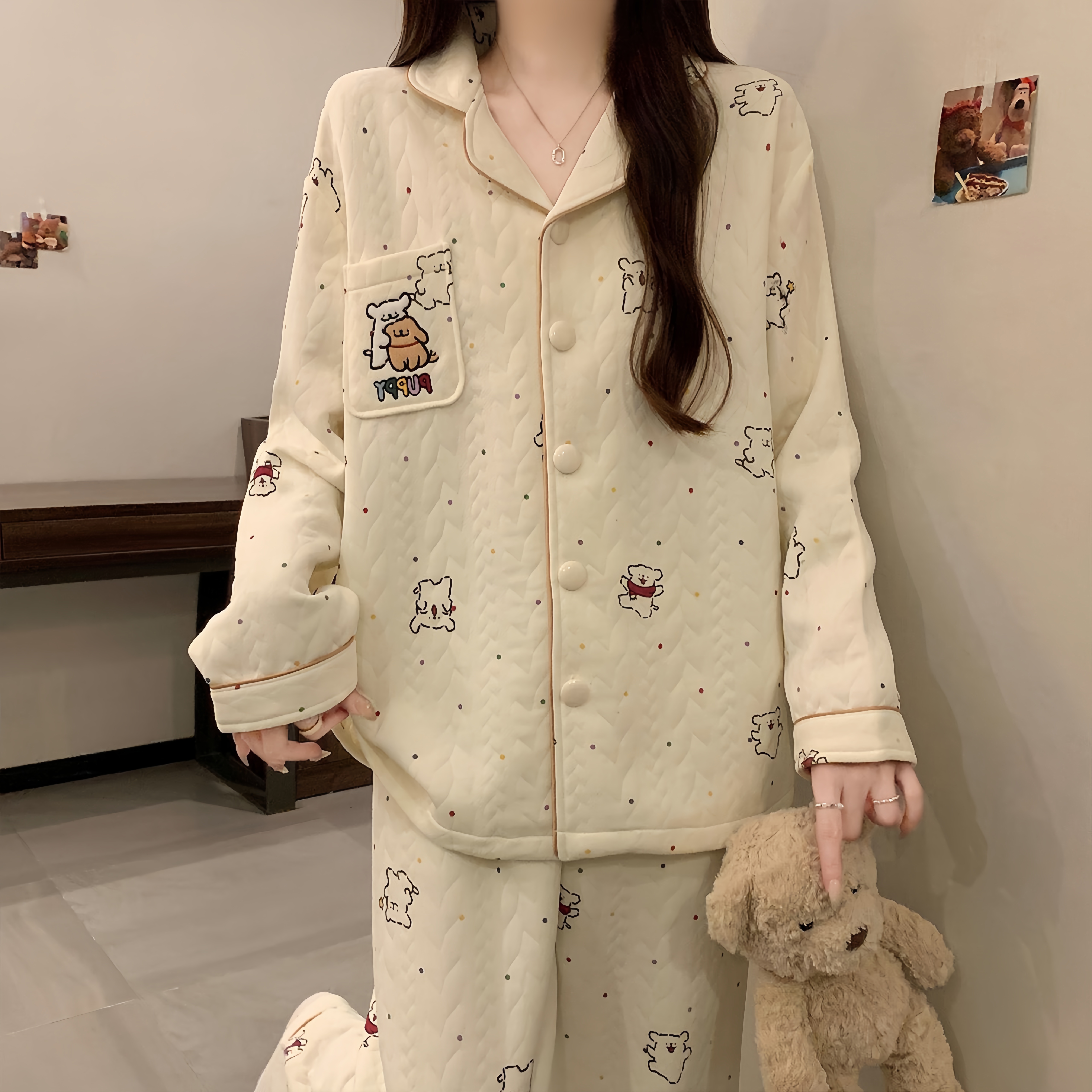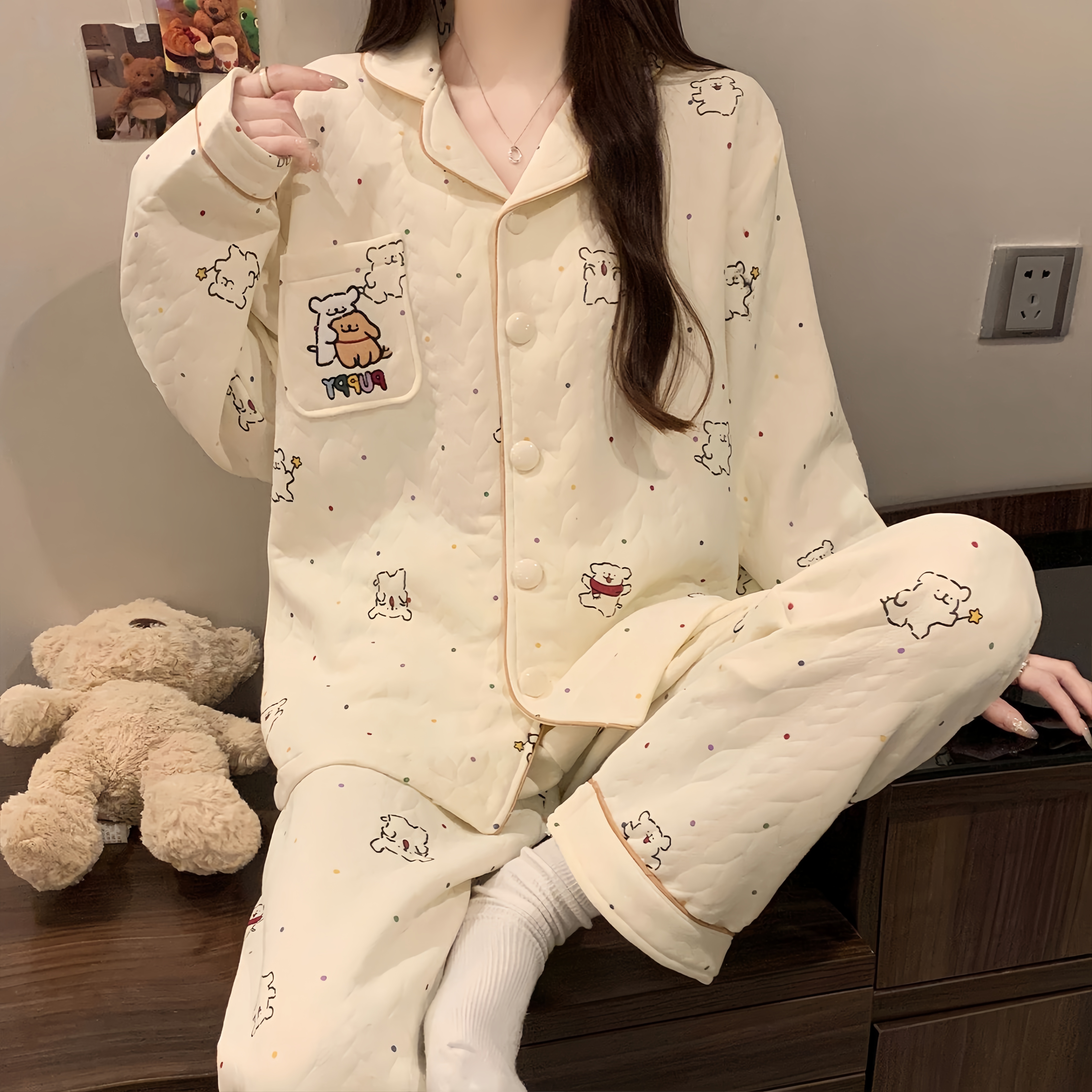 睡衣女款2025新款冬加厚加绒网红卡通可爱风宽松慵懒松弛感家居服