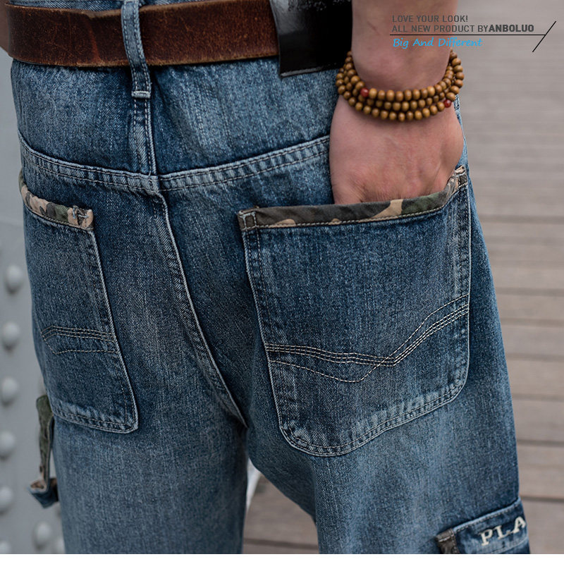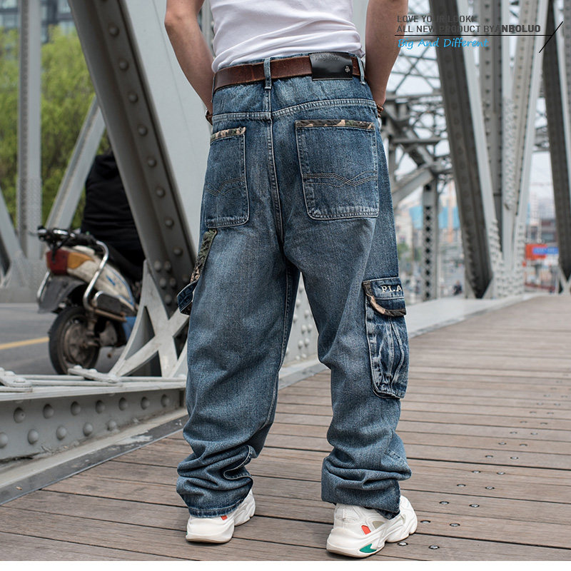 嘻哈滑板裤多口袋oldschool阔腿牛仔裤nzk肥佬胖子加肥男大码长裤
