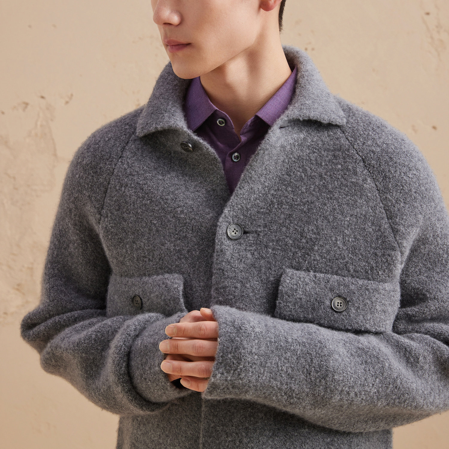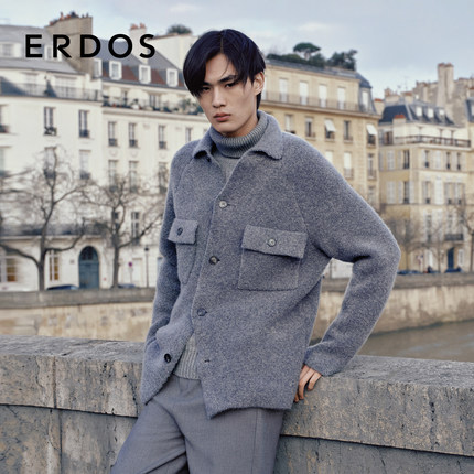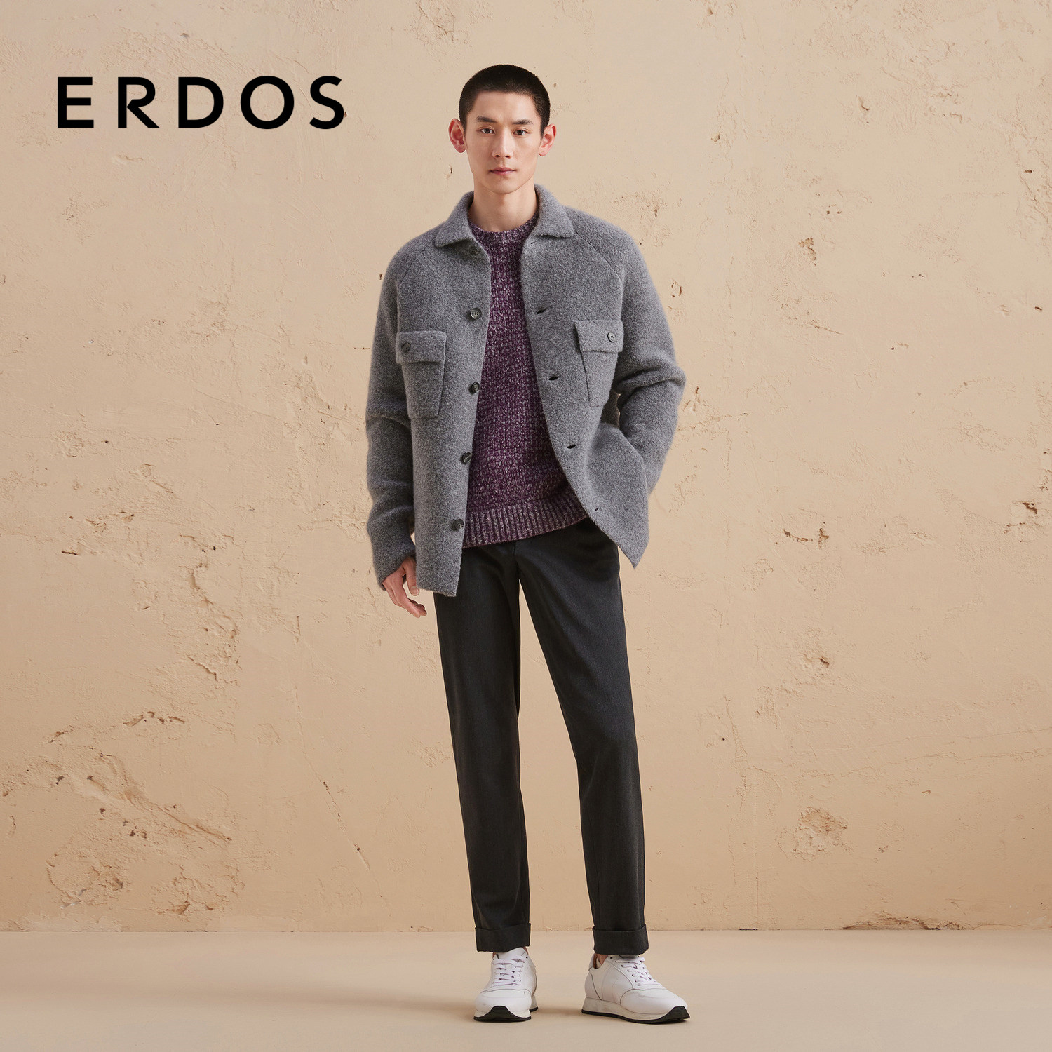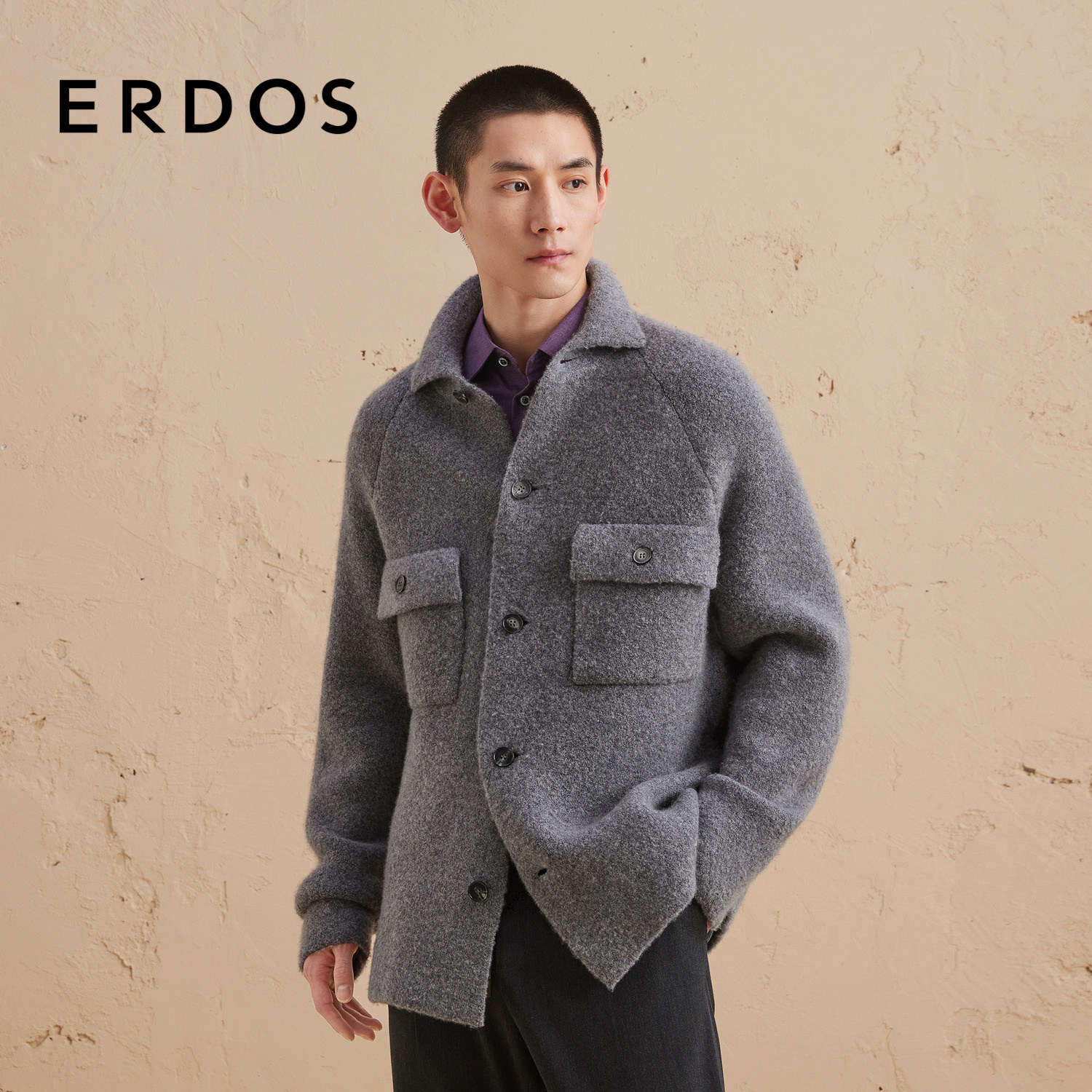 ERDOS 男装羊绒混纺衬衫夹克秋冬双提宽松加厚短款外套