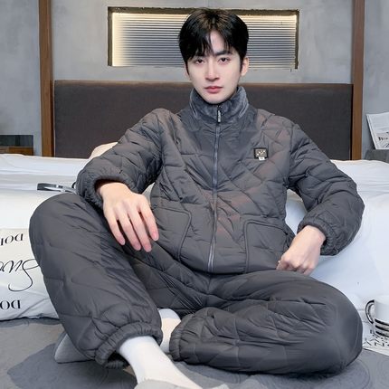 猫人睡衣男士冬季羽绒三层加厚夹棉袄保暖家居服冬天套装可外穿