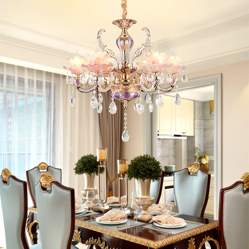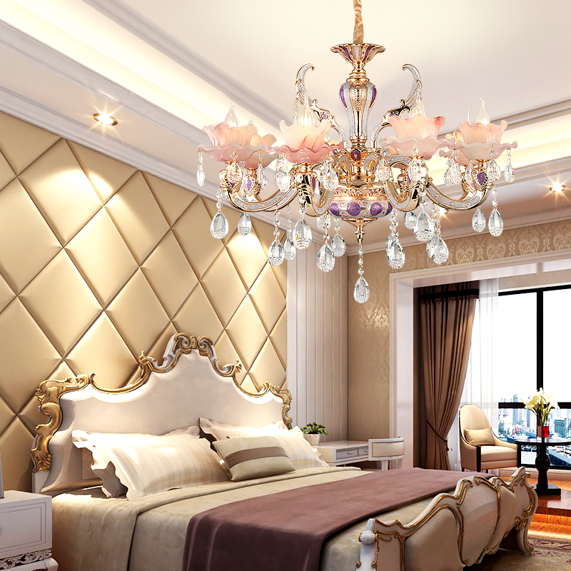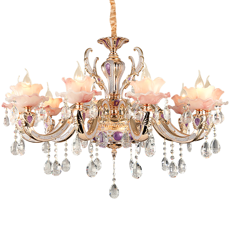 欧式水晶吊灯高档别墅客厅餐厅玉石灯温馨浪漫粉色公主房卧室灯具