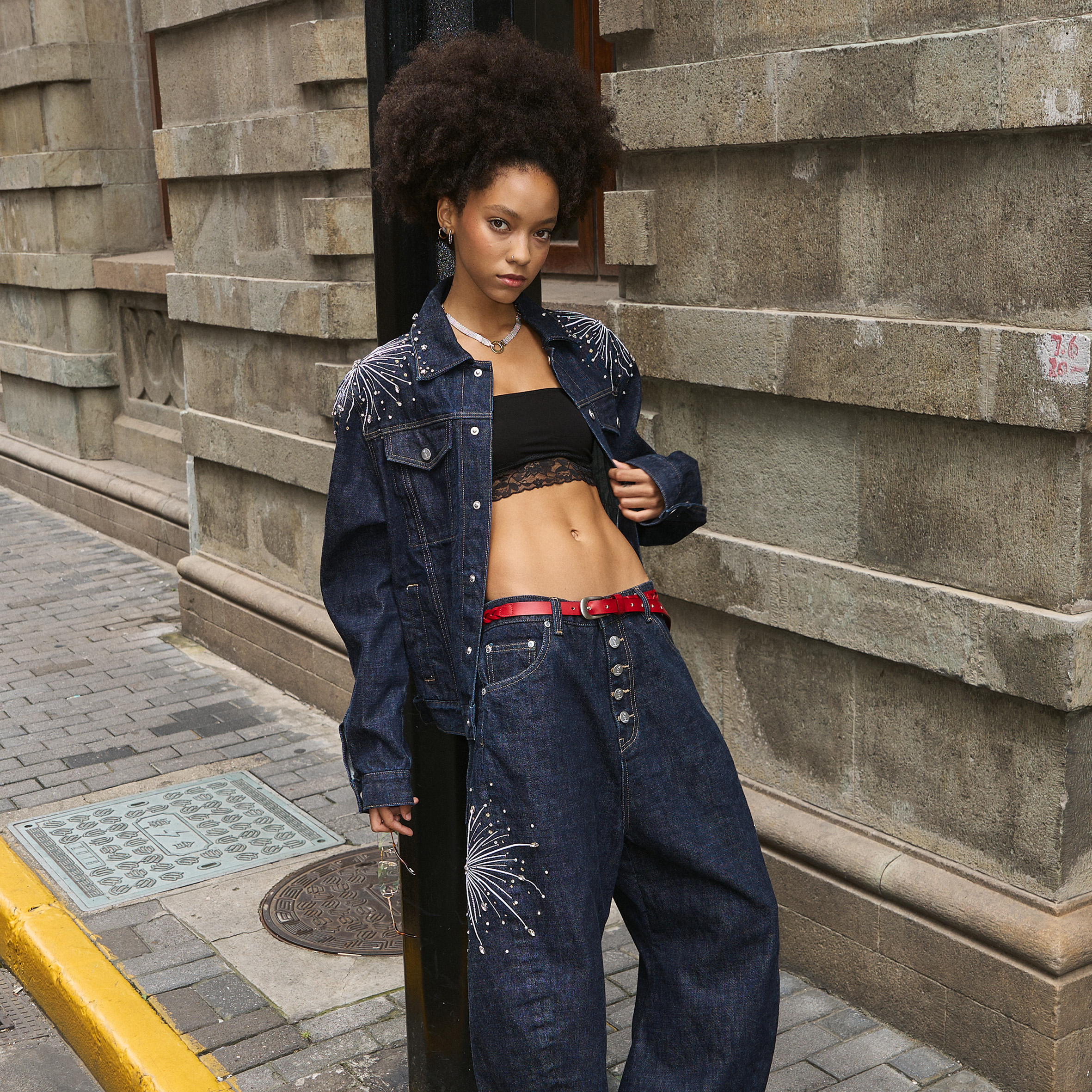 STEEPC 赤耳特种刺绣烟花手缝钻原牛短宽Boxy原牛夹克外套