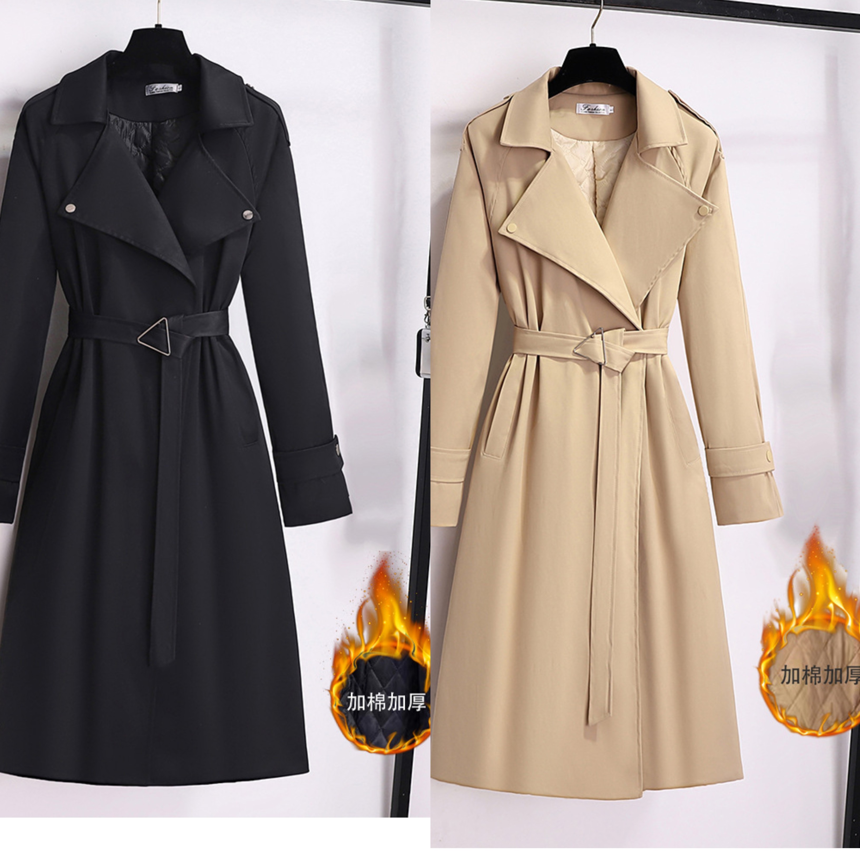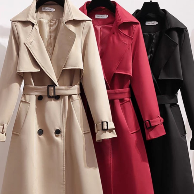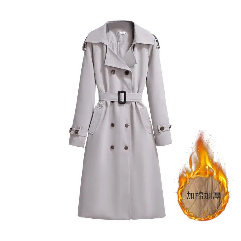 韩版风衣女英伦风长款秋冬新款百搭系带收腰休闲薄款加厚外套棉服