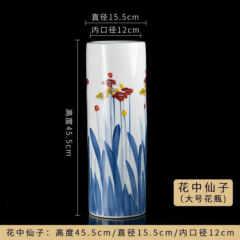 富贵竹水培客厅插花瓶陶瓷摆件装饰书画筒手绘落地大号收纳直身桶