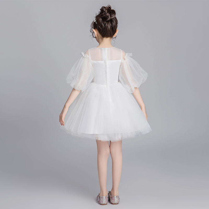 儿童礼服公主裙女童蓬蓬纱白色花童婚纱小女孩主持人钢琴演出服冬