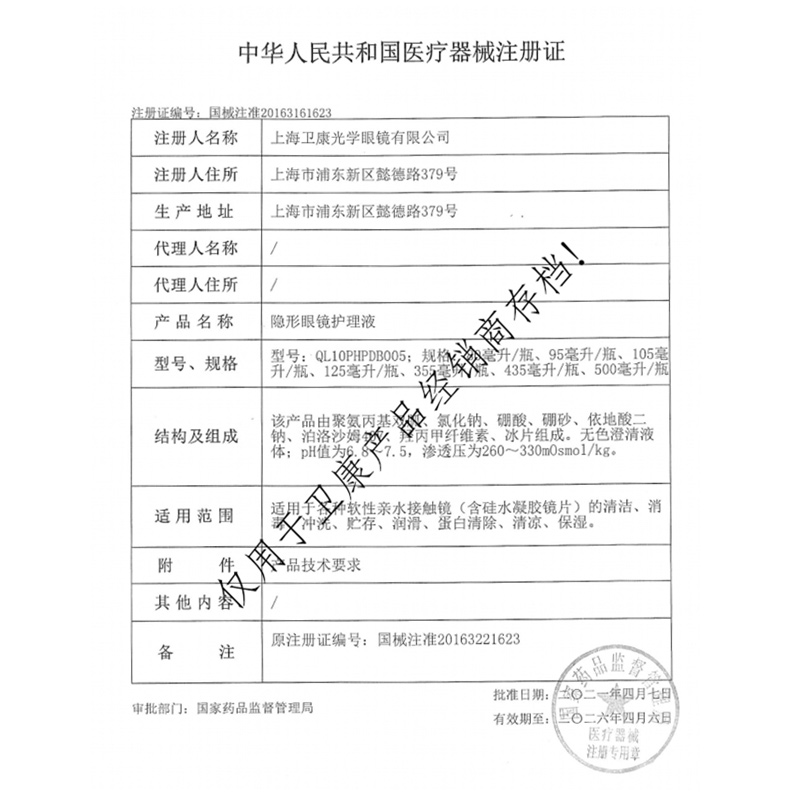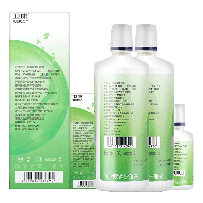 3瓶装】卫康隐形近视眼镜护理液500*2+125ml美瞳药水官方旗舰sk