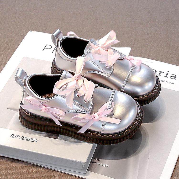 KFT脚王女童小皮鞋2025新款秋季儿童洋气蝴蝶结配裙子公主鞋女孩