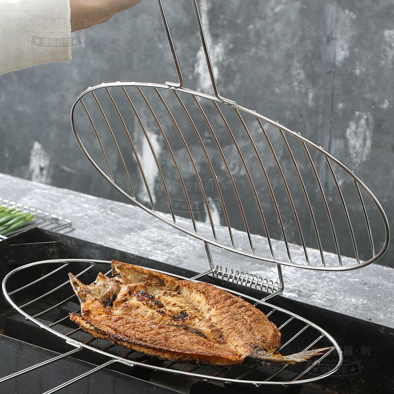 烤鱼夹子不锈钢烤鱼架子商用大号烤鱼网夹烧烤网夹板圆形烧烤用具