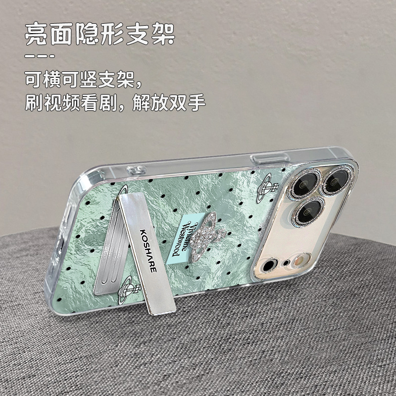 适用苹果17promax手机壳新女款iPhone16/14pro波点西太后金属支架15plus全包镜头膜13爆款11锡纸纹12创意高级