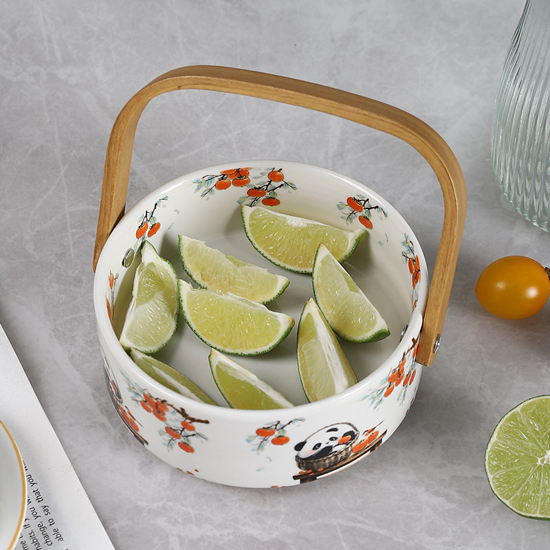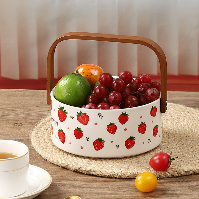 高档加厚陶瓷手提水果篮点心摆盘