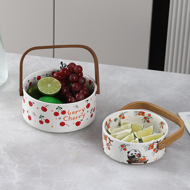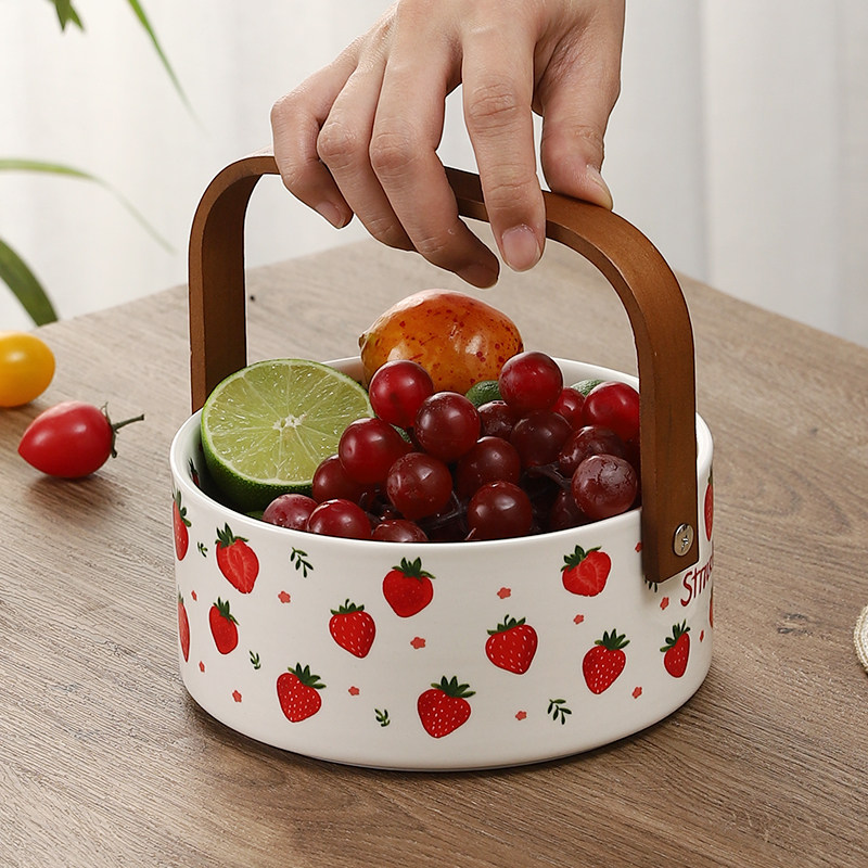 加厚陶瓷手提水果篮家用客厅茶几零食糖果盘下午茶点心盘收纳摆件