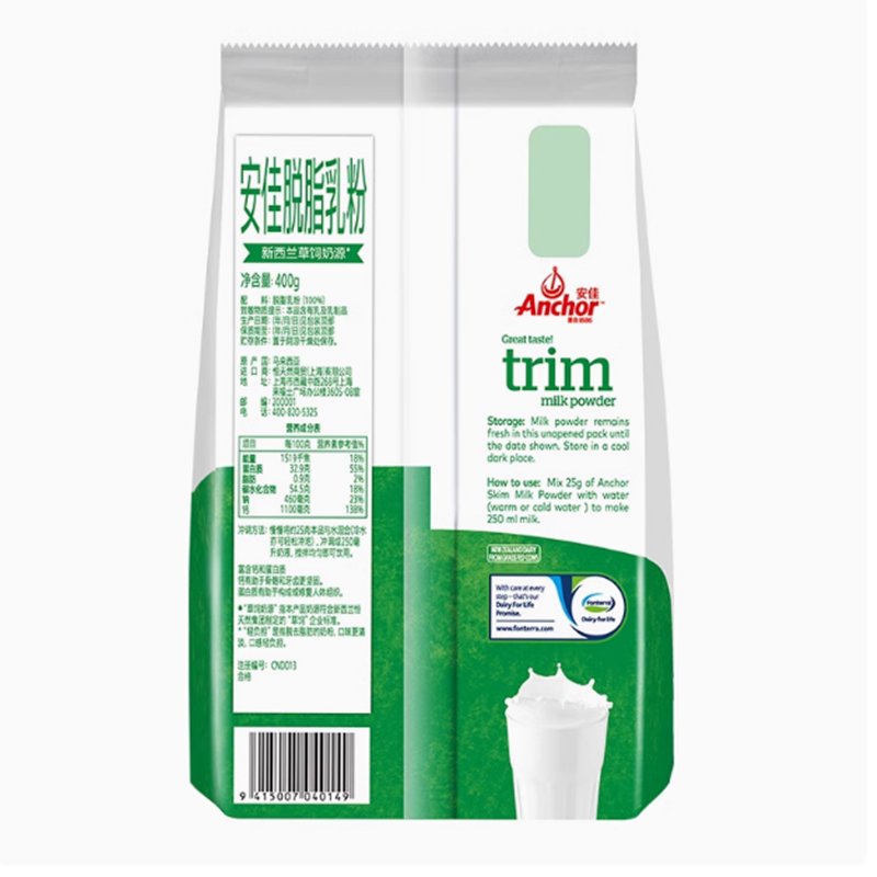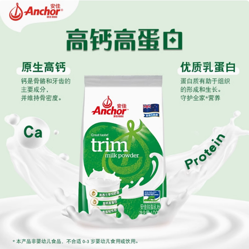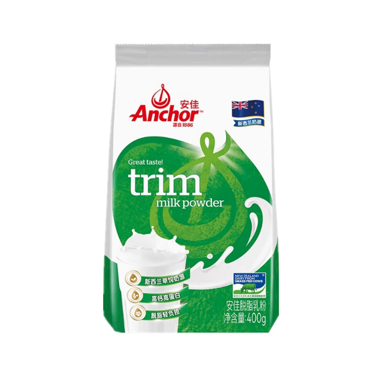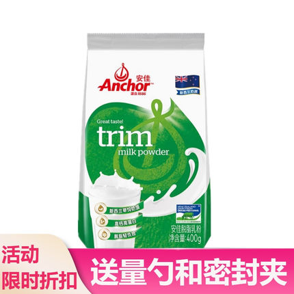 新西兰进口奶源安佳脱脂奶粉早餐学生成人牛奶粉烘焙奶粉400g