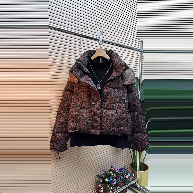 加肥连帽长袖豹纹棉服大码女装2025冬季欧货百搭洋气宽松保暖外套