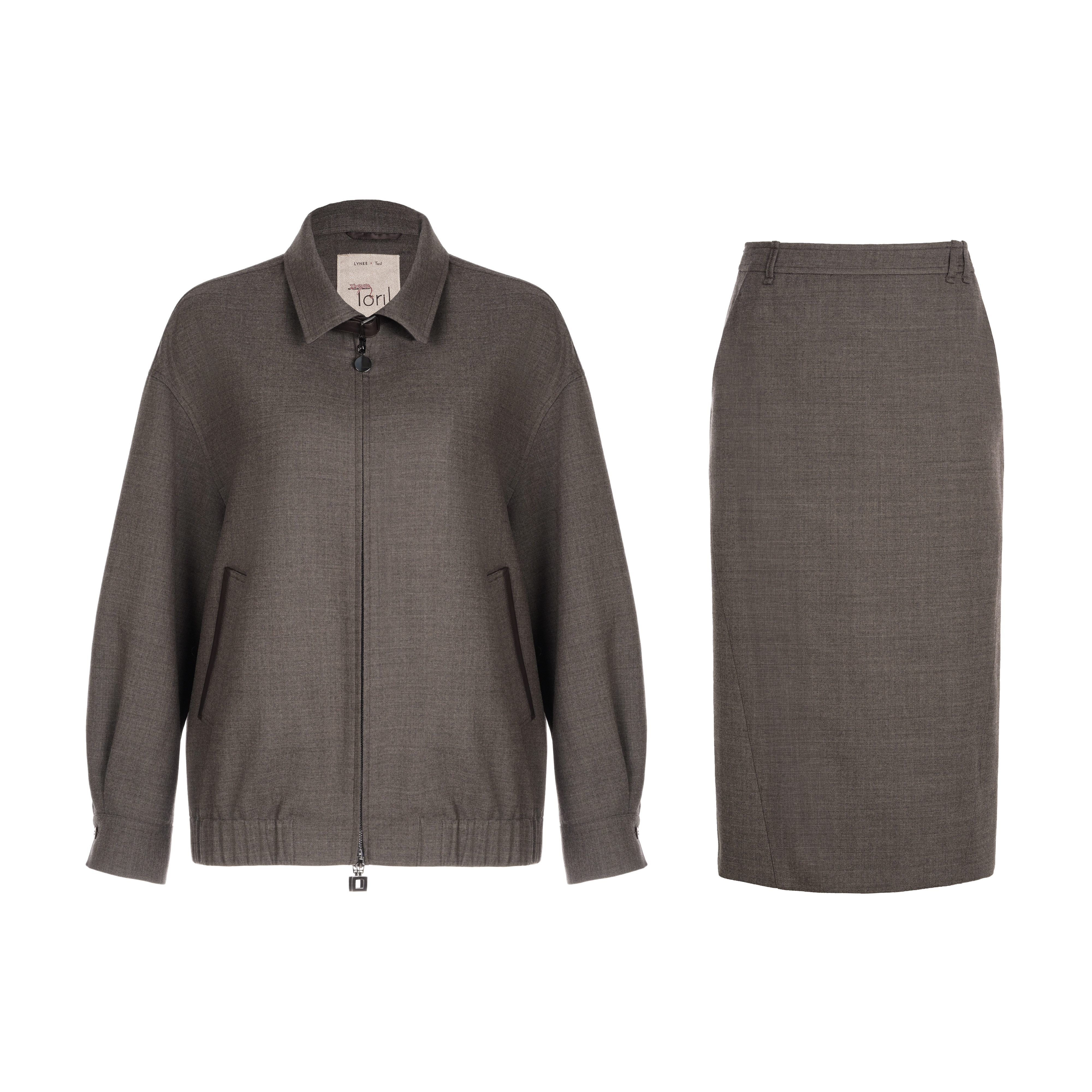 LYNEE 【曼城旧事】老钱羊毛拼皮翻领落肩夹克外套/直筒中长半裙