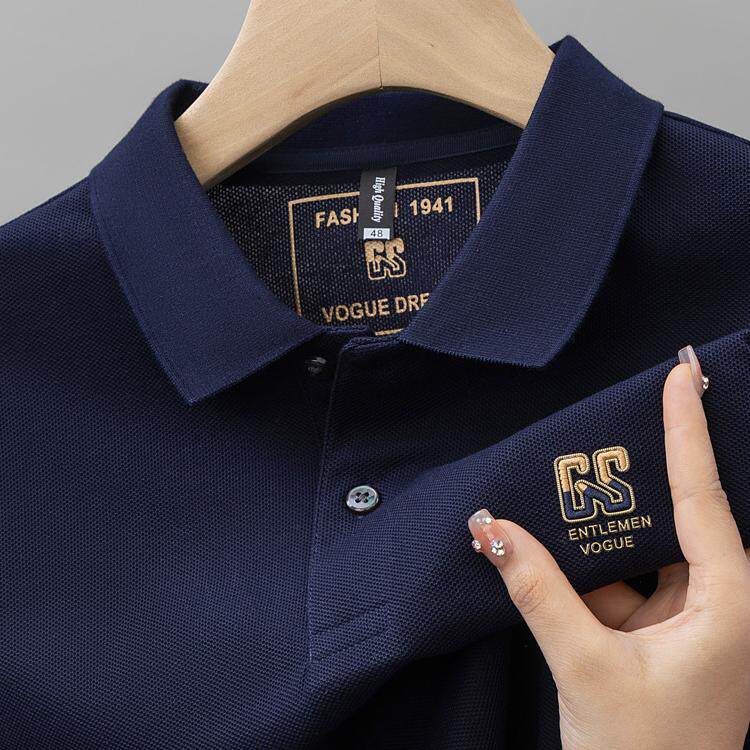纯棉刺绣长袖t恤男春秋季新款男装翻领体恤上衣打底衫轻奢POLO衫