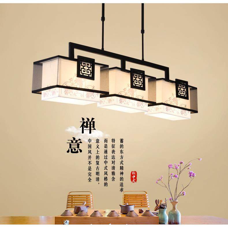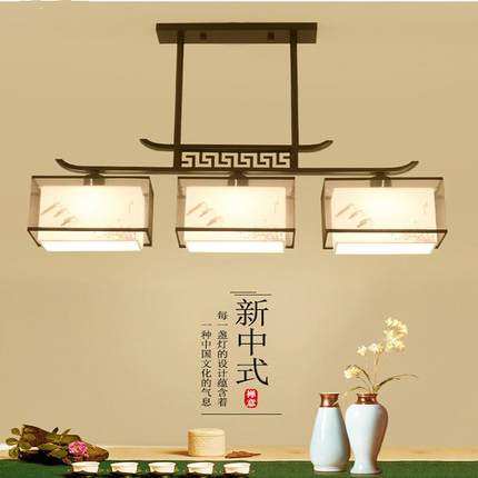 新中式餐厅吊灯三头现代简约长方形茶室书房风吧台铁艺灯具