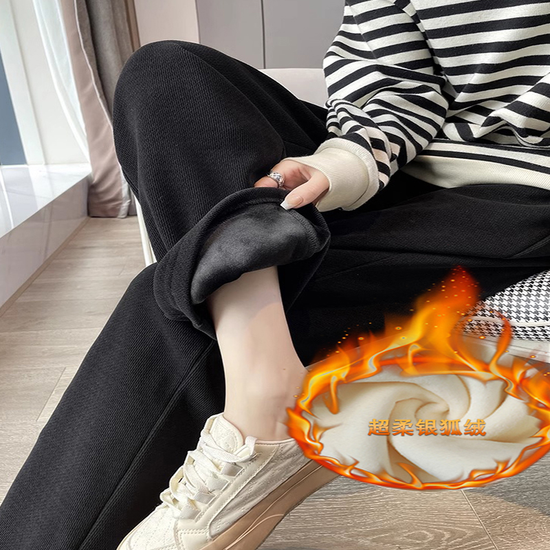 大码欧棉绒阔腿裤女秋冬2025新款加绒窄版高腰休闲直筒雪尼尔裤子