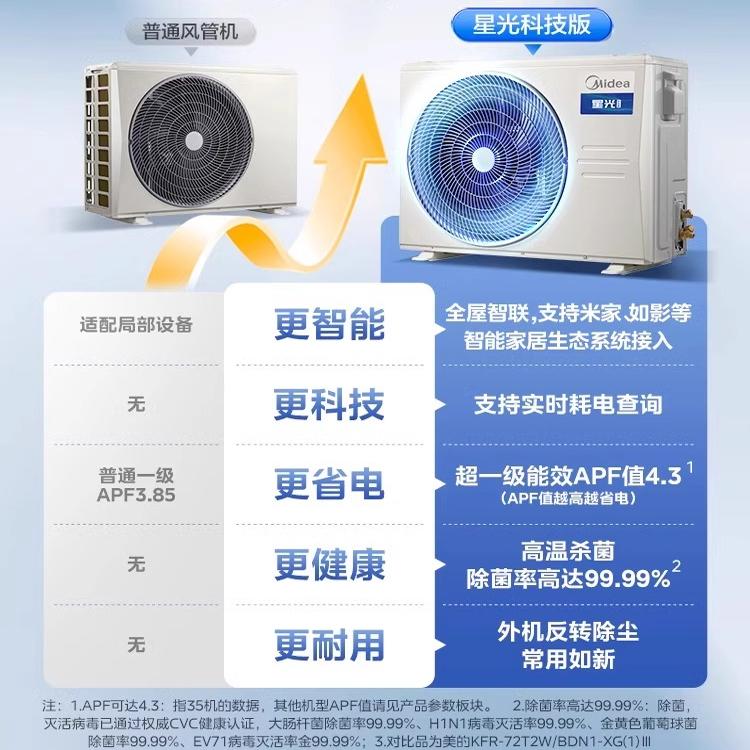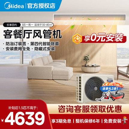 【政府补贴】美的风管机一拖一客厅家用中央空调变频大3匹1.5p