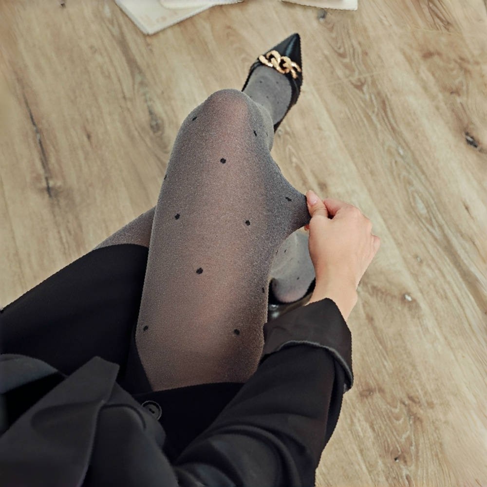 灰色波点微透肉丝袜春秋季款防勾丝穿搭miu袜子女圆点打底连体裤