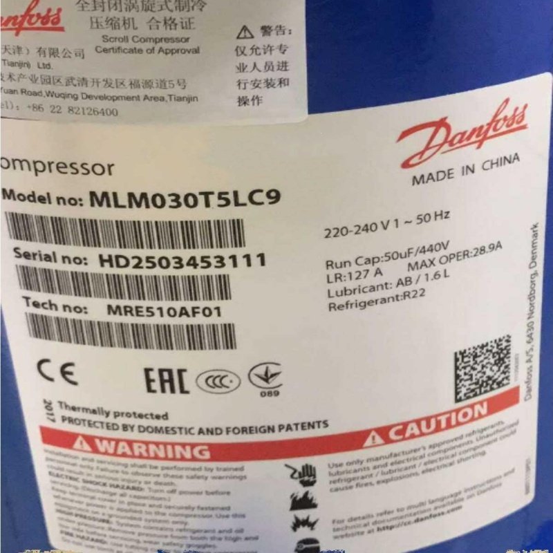 丹佛斯压缩机MLM021T4LP9 MLZ045T4LC9 048 058 076 MLM038T4LC9A