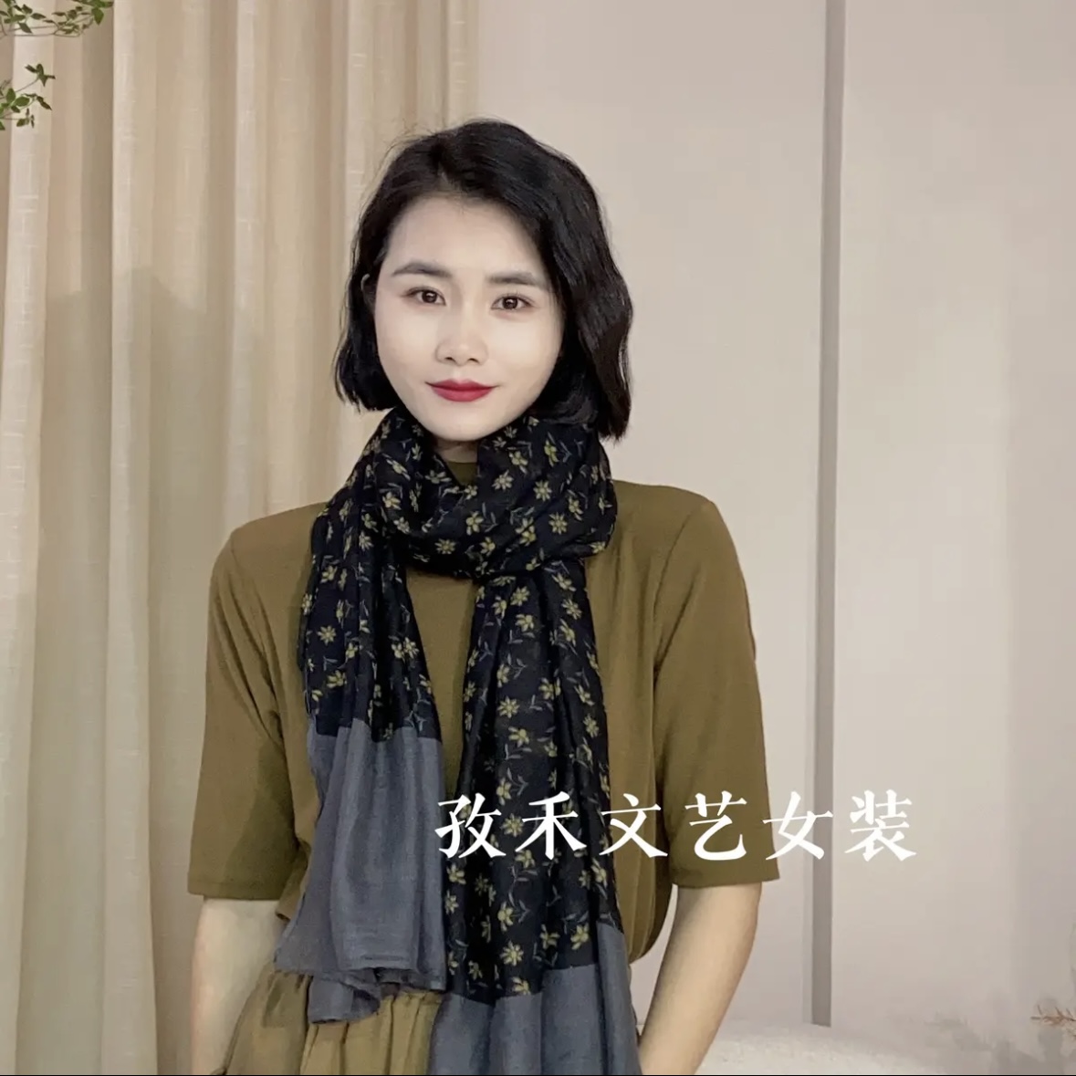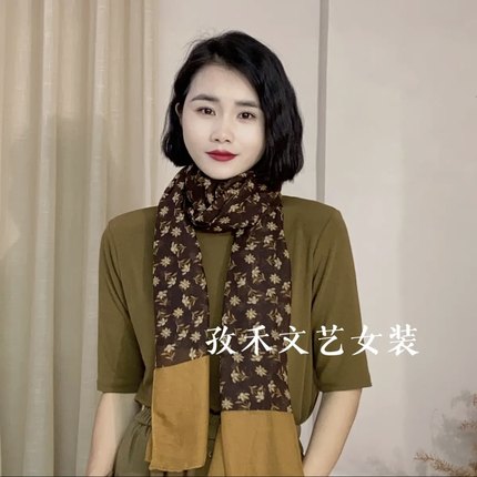 女士春秋围巾棉麻亲肤文艺款配大衣内搭丝巾复古高级感围巾国风