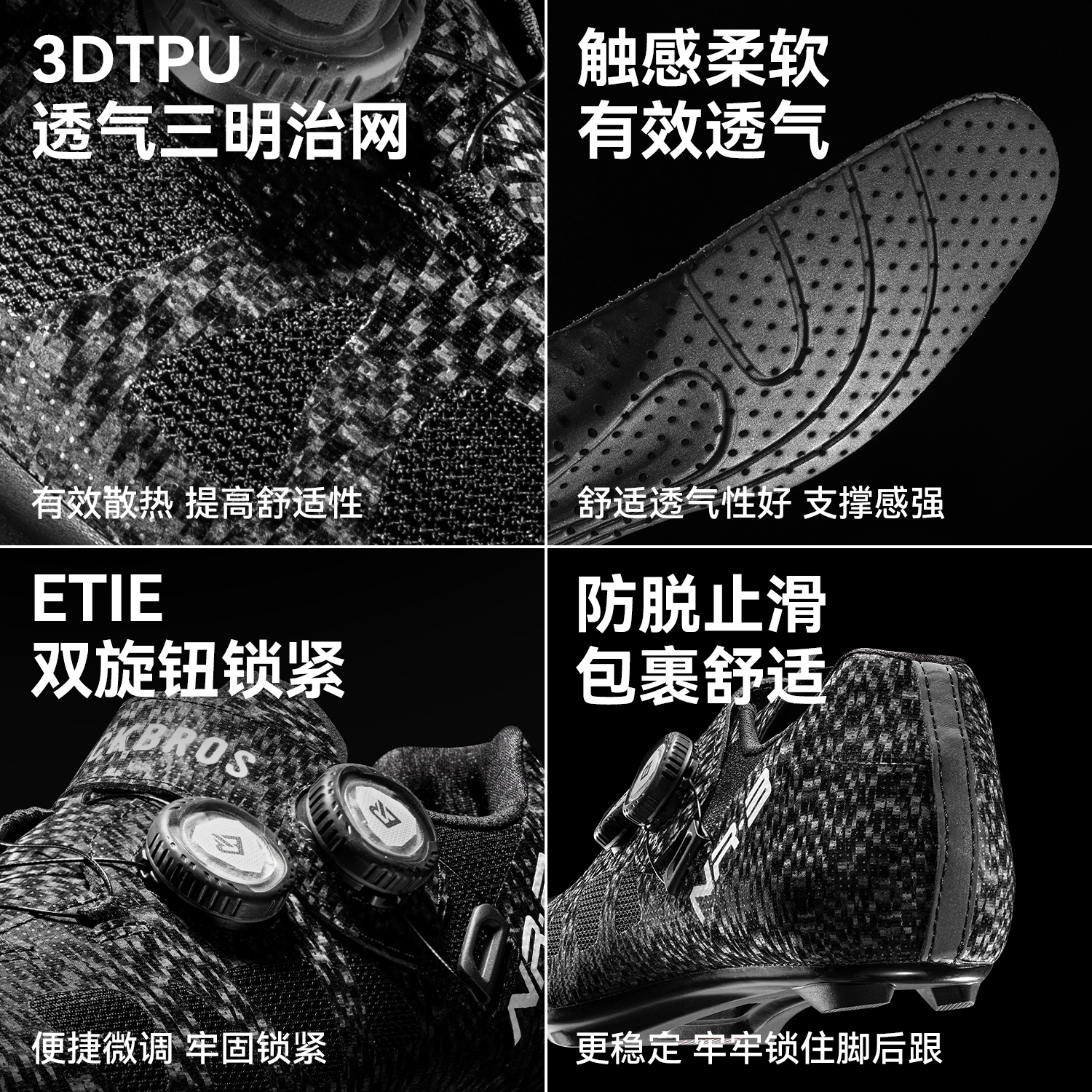 洛克兄弟公路自行车锁鞋碳纤维鞋底竞赛加硬底骑行鞋透气旋钮男女