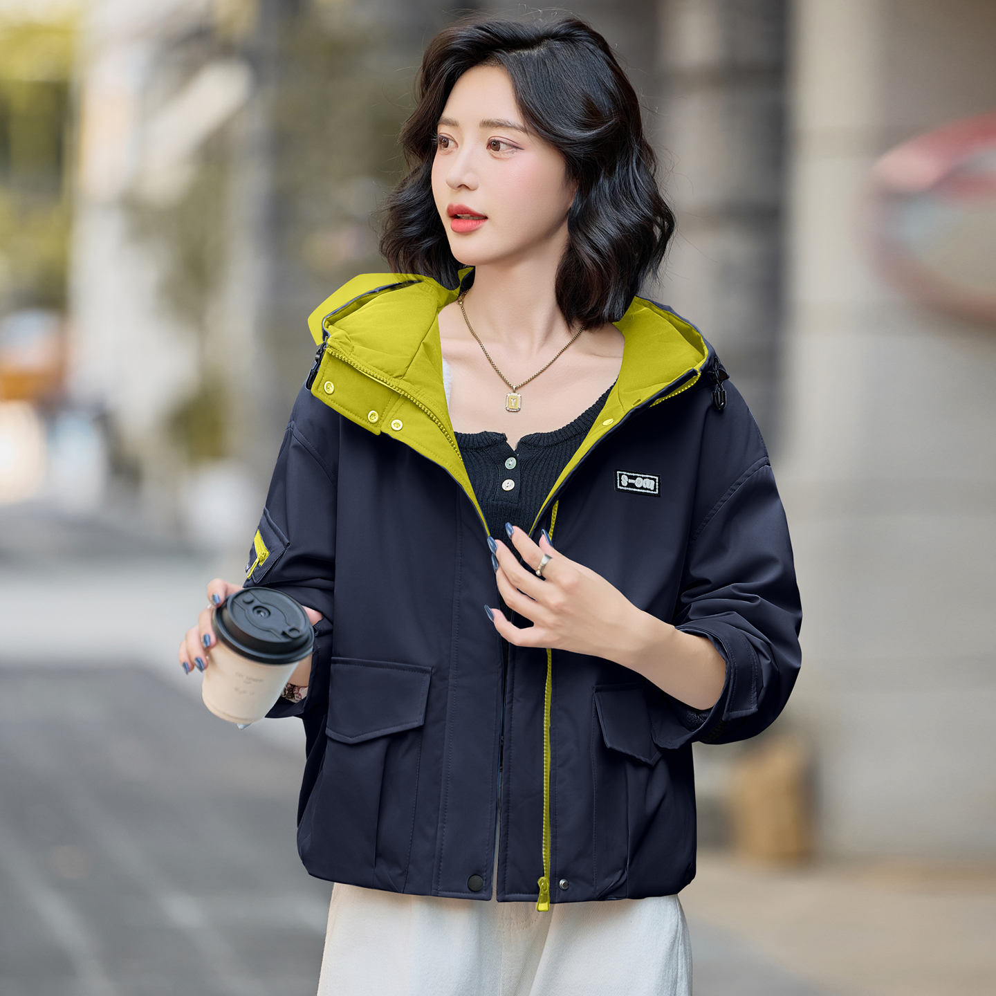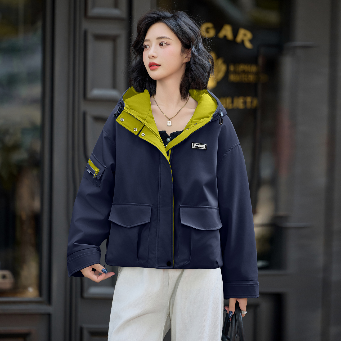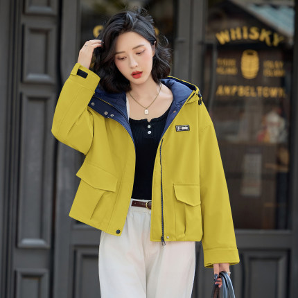 时尚休闲连帽加绒短外套女2025年冬季新款宽松百搭加厚冲锋衣夹克