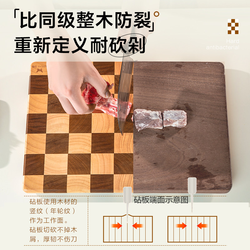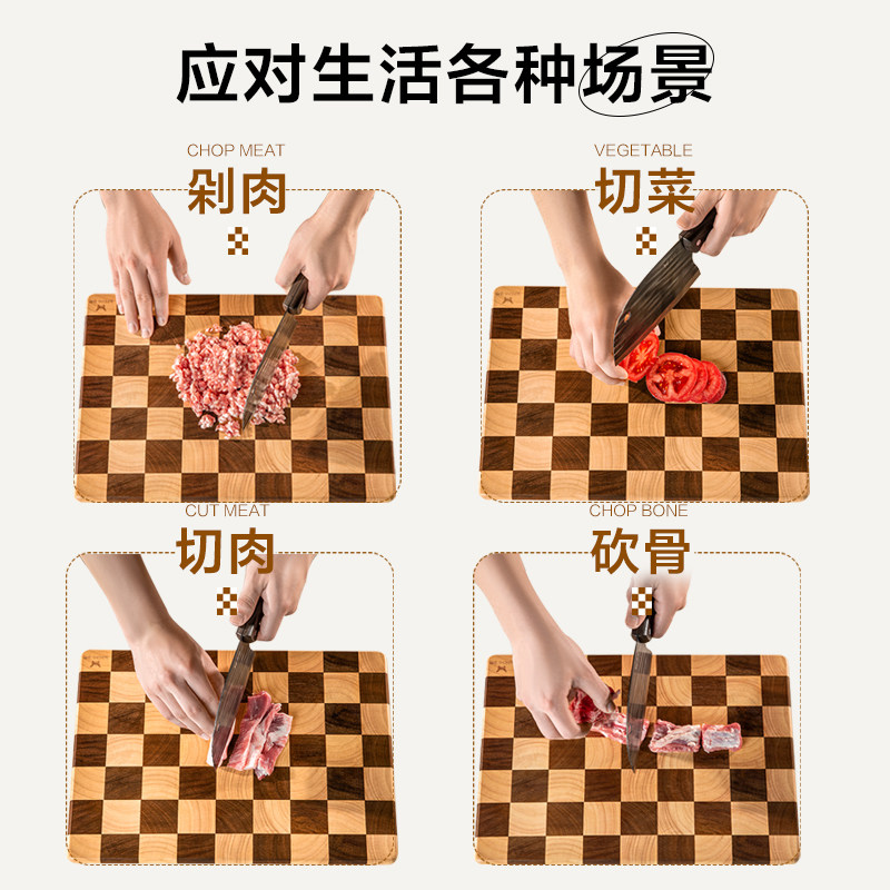 双枪棋盘格菜板家用抗菌防霉砧板相思实木特厚高贵切菜板水果案板