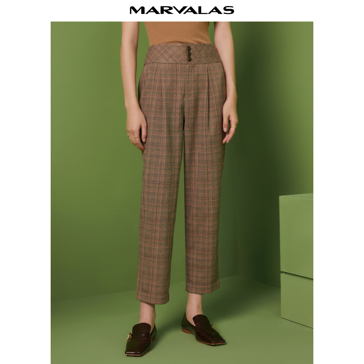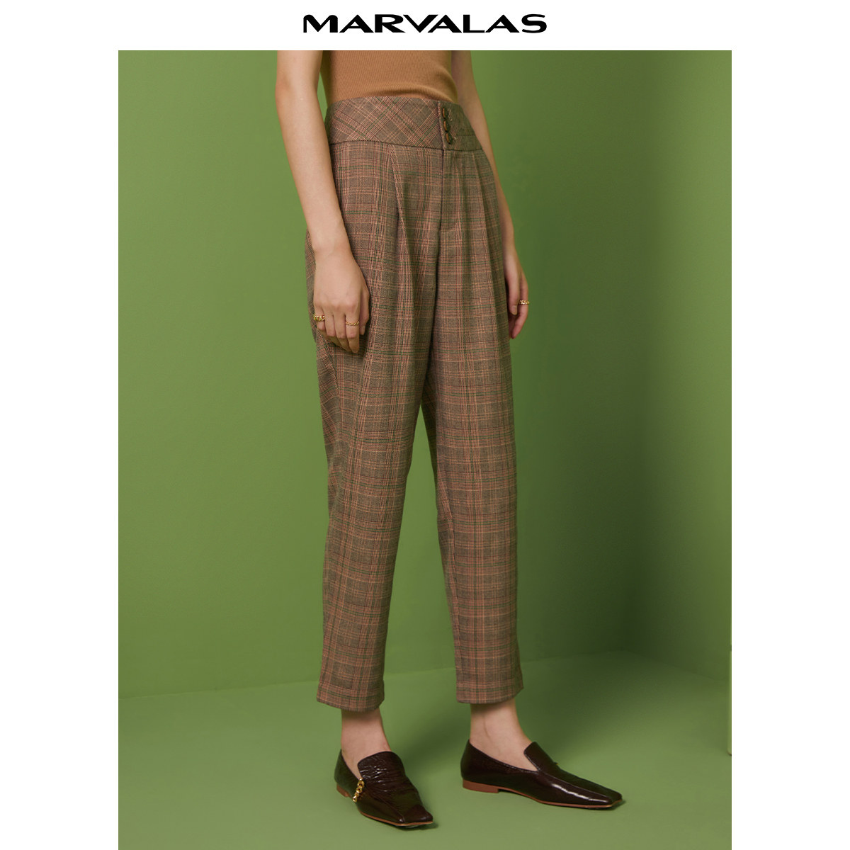 曼德诗格纹休闲裤女2025夏装新款复古英伦风直筒西裤百搭九分裤子