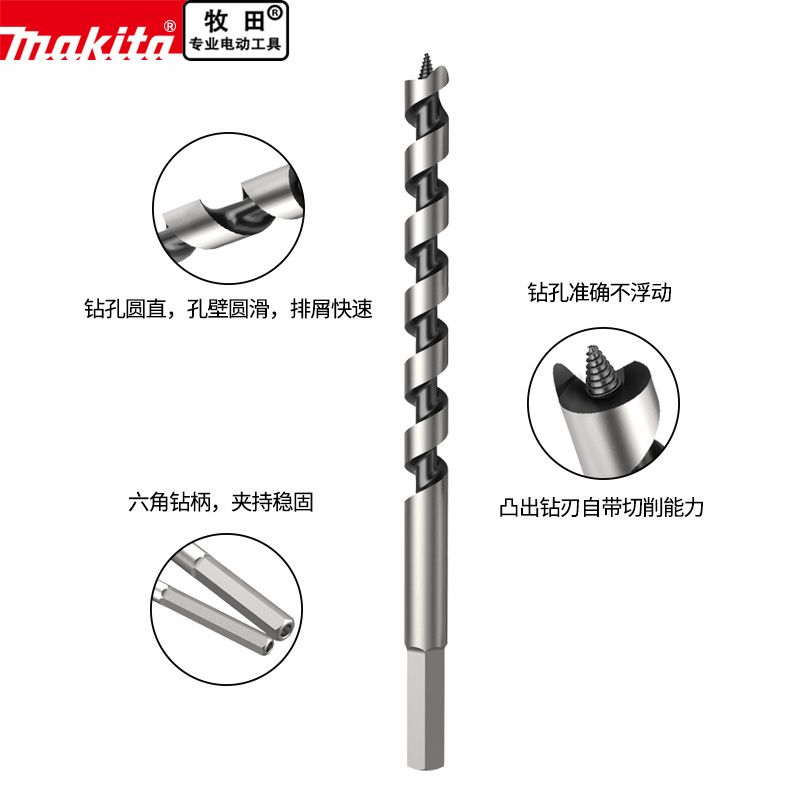 makita/牧田木工六角柄支罗钻头加长木头开孔器钻树6-V30mm支罗钻
