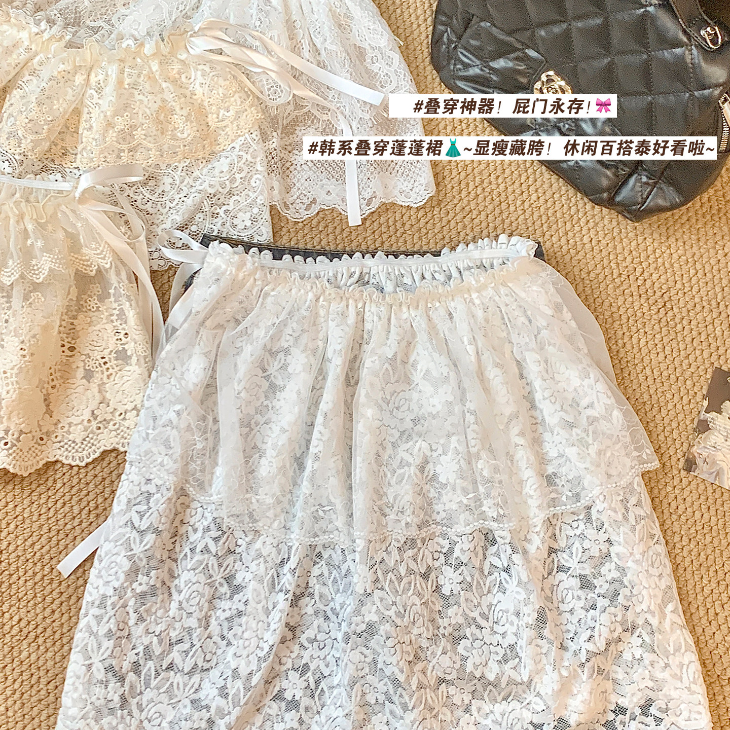 韩系白色蕾丝长款屁帘女春夏叠穿半身裙配牛仔裤遮臀短裙2026新款
