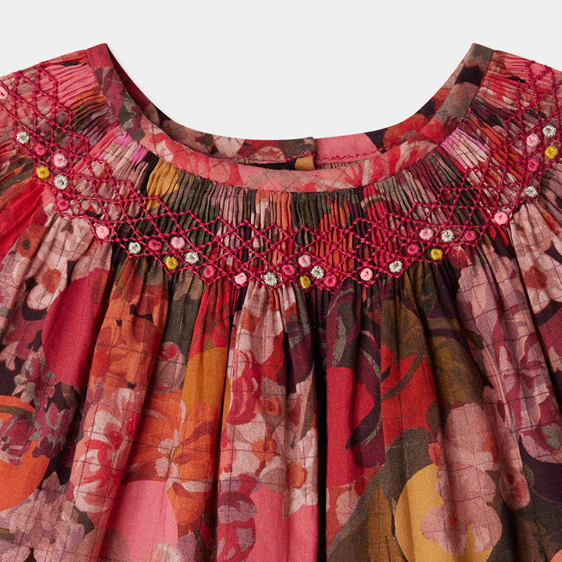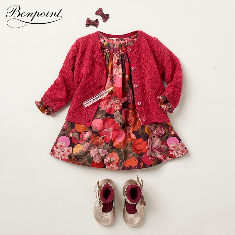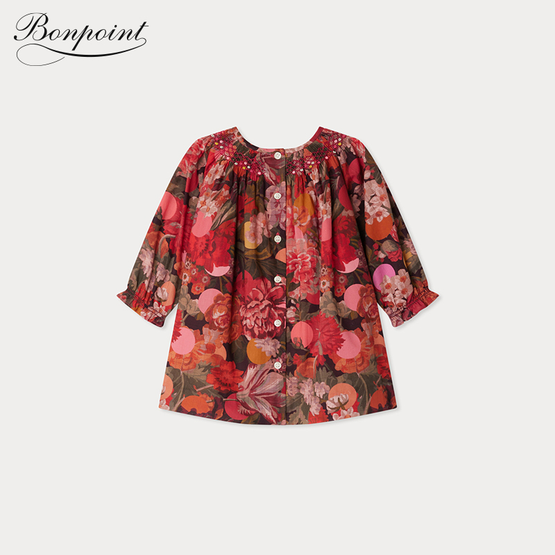 【新品】2025秋季女小童碎花缩褶连身裙Bonpoint童装