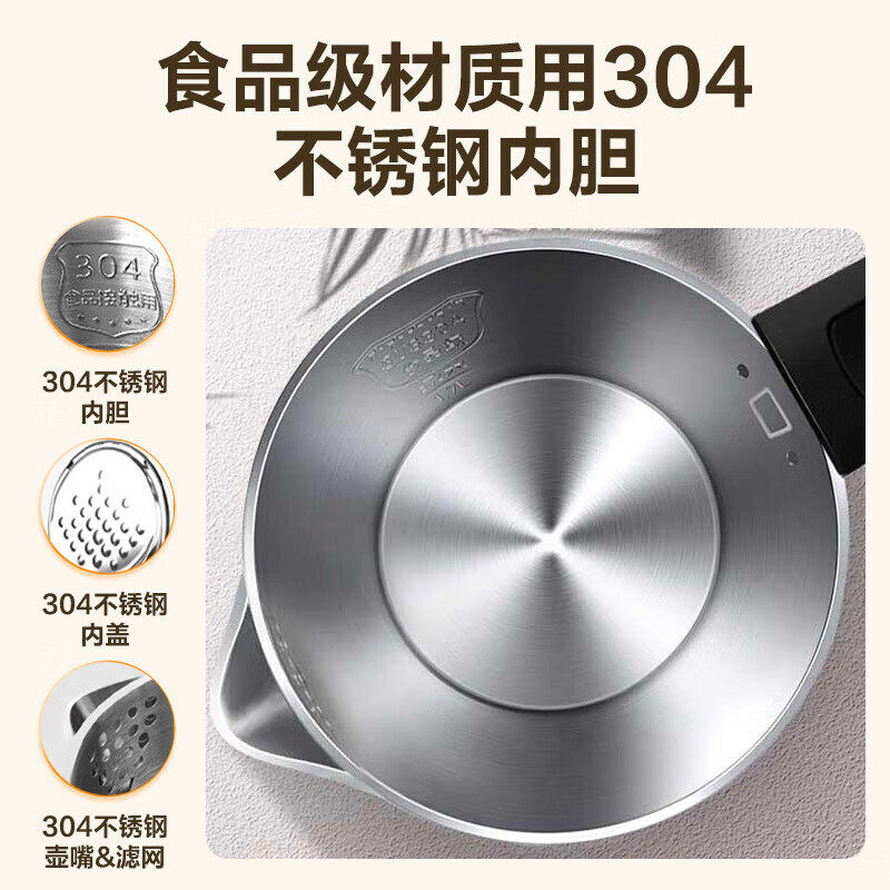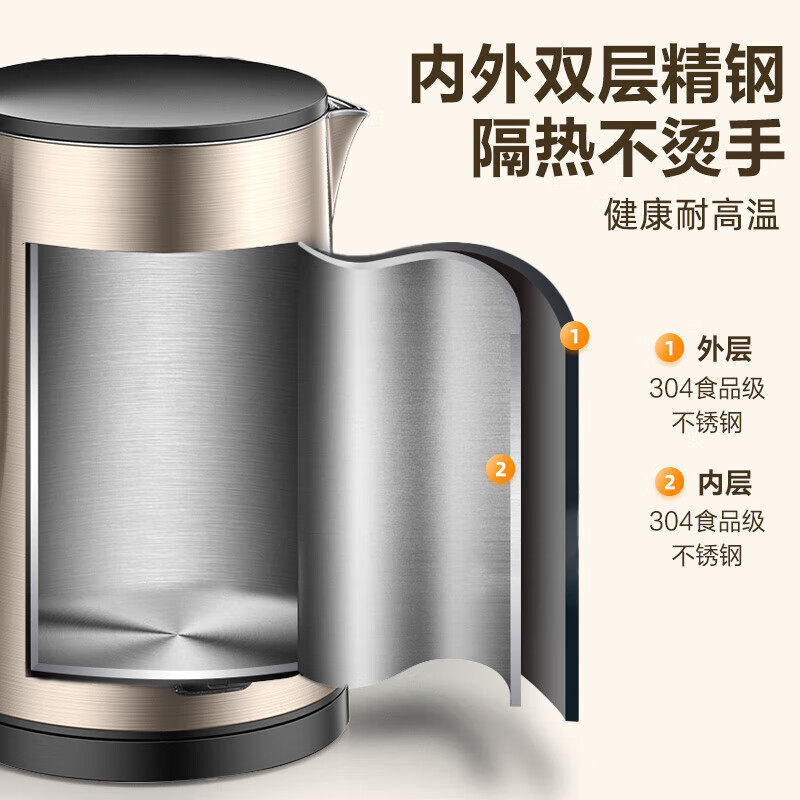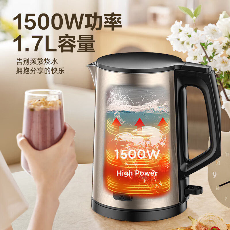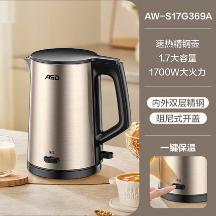 爱仕达烧水壶家用电热水壶304不锈钢内胆保温一体1.7L煮水壶
