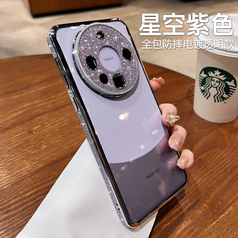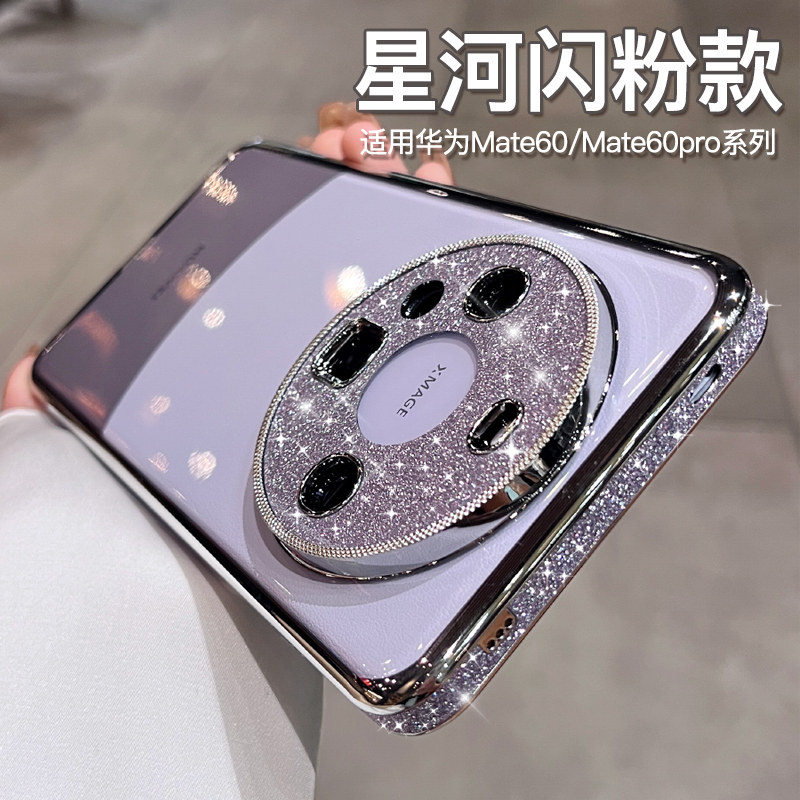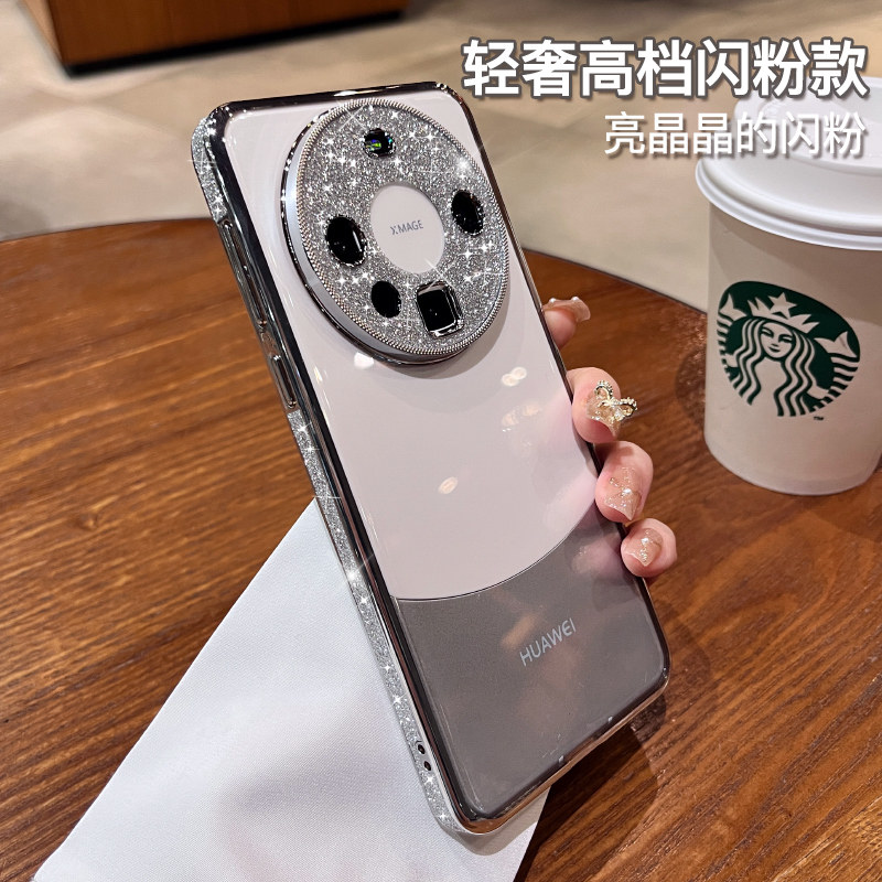 奢华闪粉适用于华为的mate60pro+手机壳新款女mate70pro透明50镜头全包p60保护套mt40高级感防摔pura70外壳