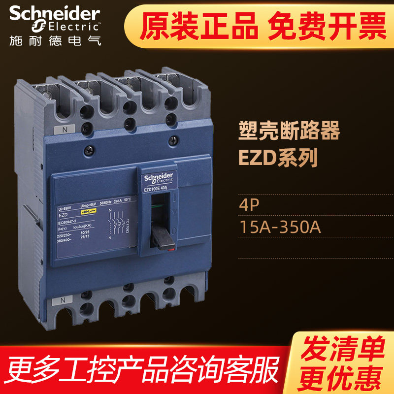 施耐德100A空气开关塑壳断路器4P电闸空开380V 250A EZD100E4100N