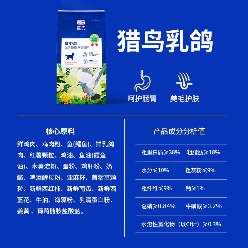 蓝氏猎鸟乳鸽冻干猫粮10kg