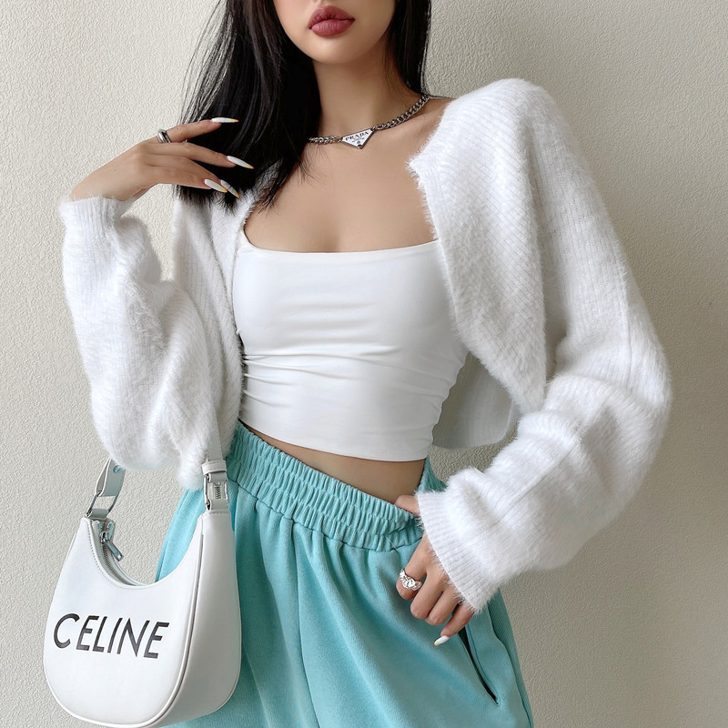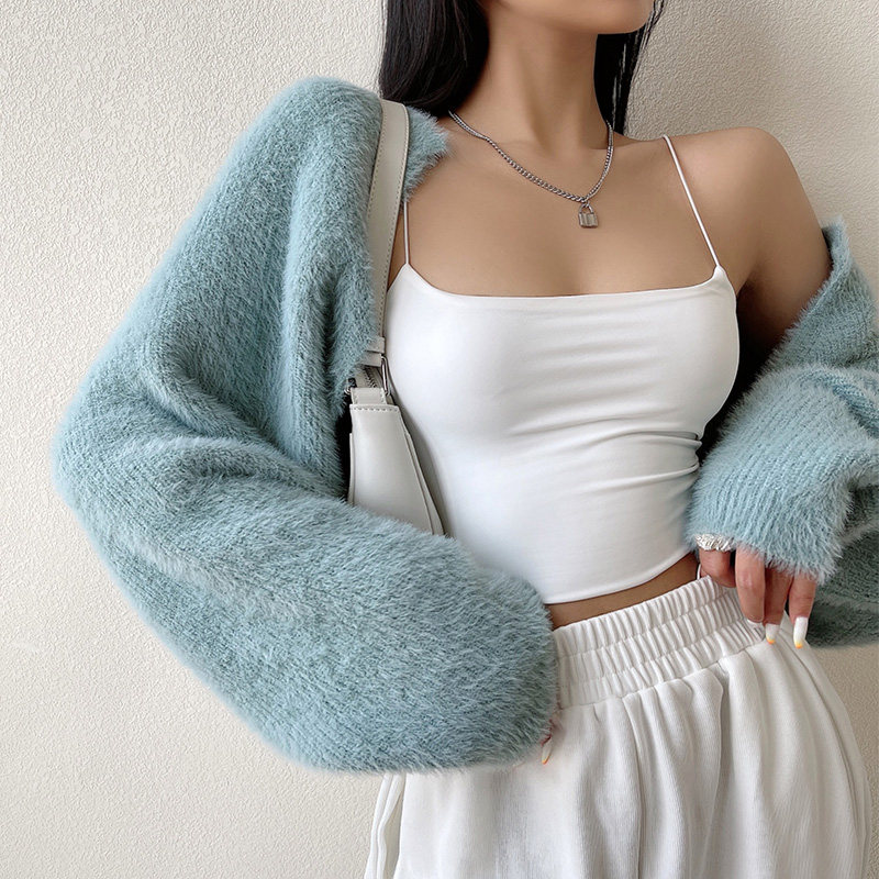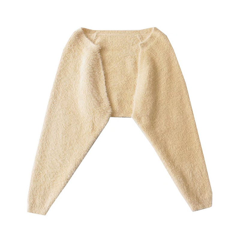 liviahome 欧美甜辣杏色毛毛针织开衫女仿貂毛短款外搭披肩外套
