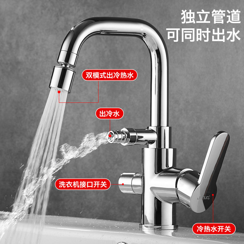 面盆冷热水龙头多功能洗脸盆旋转龙头双用三通可接洗衣机台盆单孔