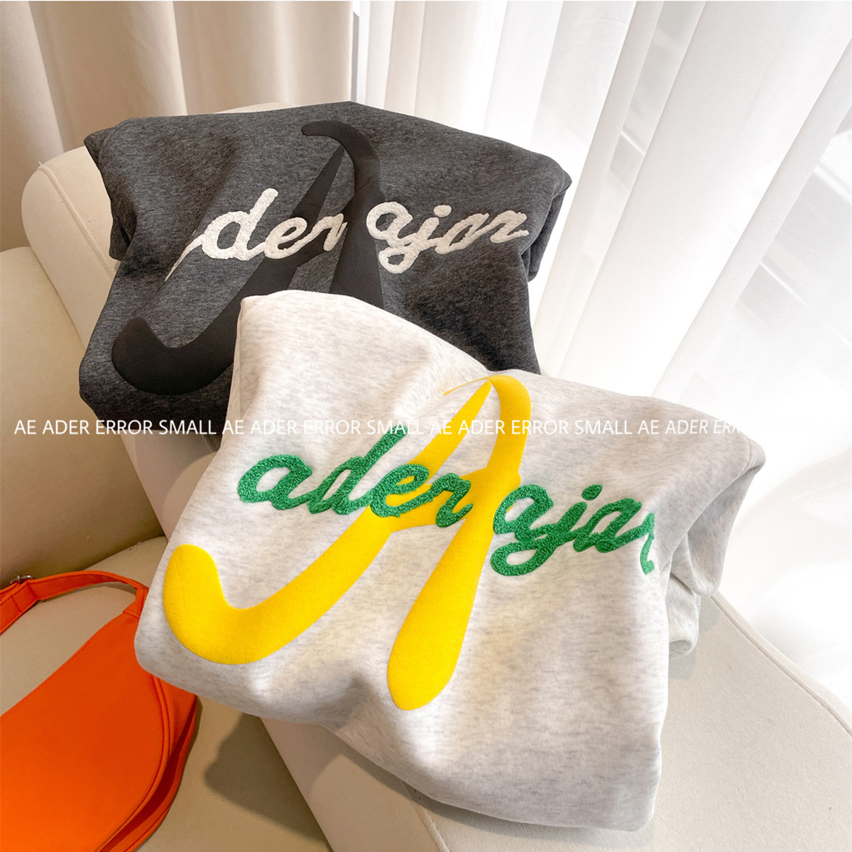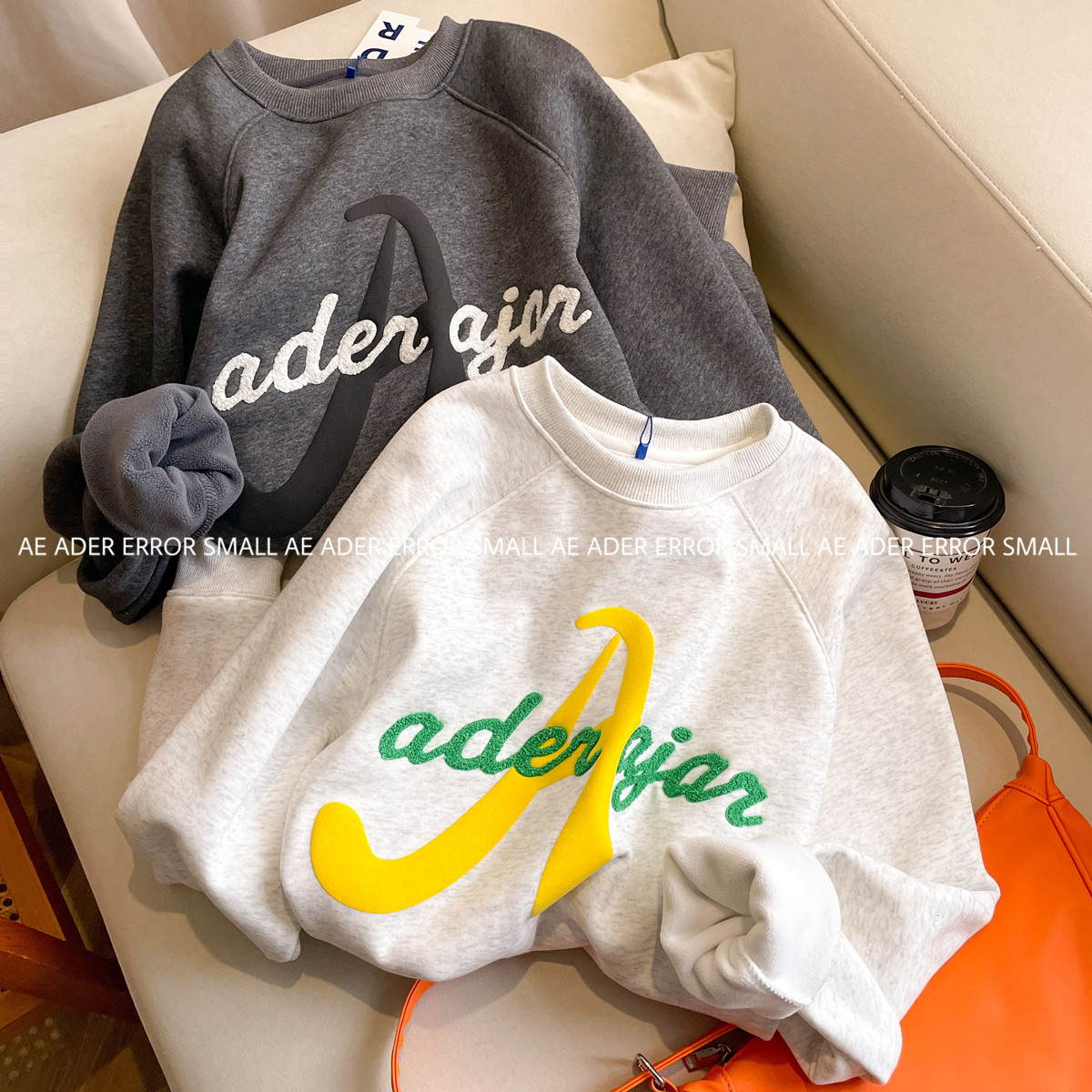 ader error small加绒卫衣女秋冬宽松套头圆领加厚毛巾字母上衣潮
