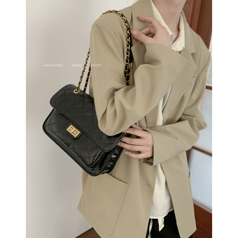 小香风菱格链条包包秋冬女2024新款潮托特包百搭ins大容量通勤包