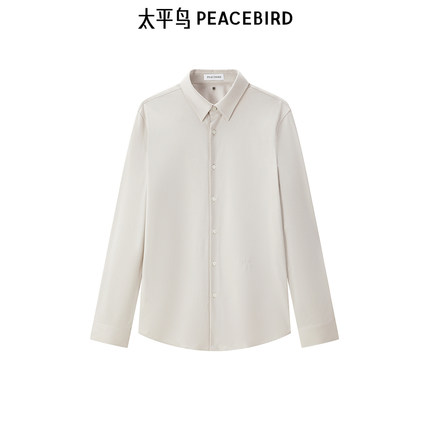 太平鸟男装 长袖衬衫男秋季商务休闲修身刺绣翻领衬衣男