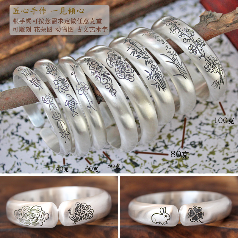 手工定制999足银手镯女纯银实心开口复古银饰妈妈款贵妃古法镯子
