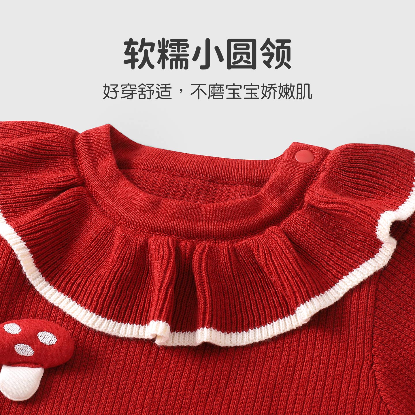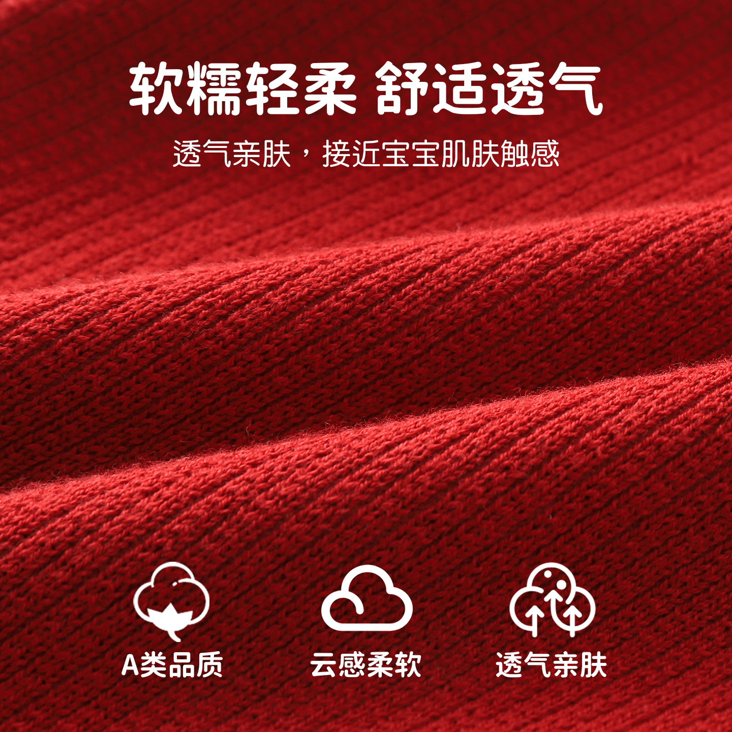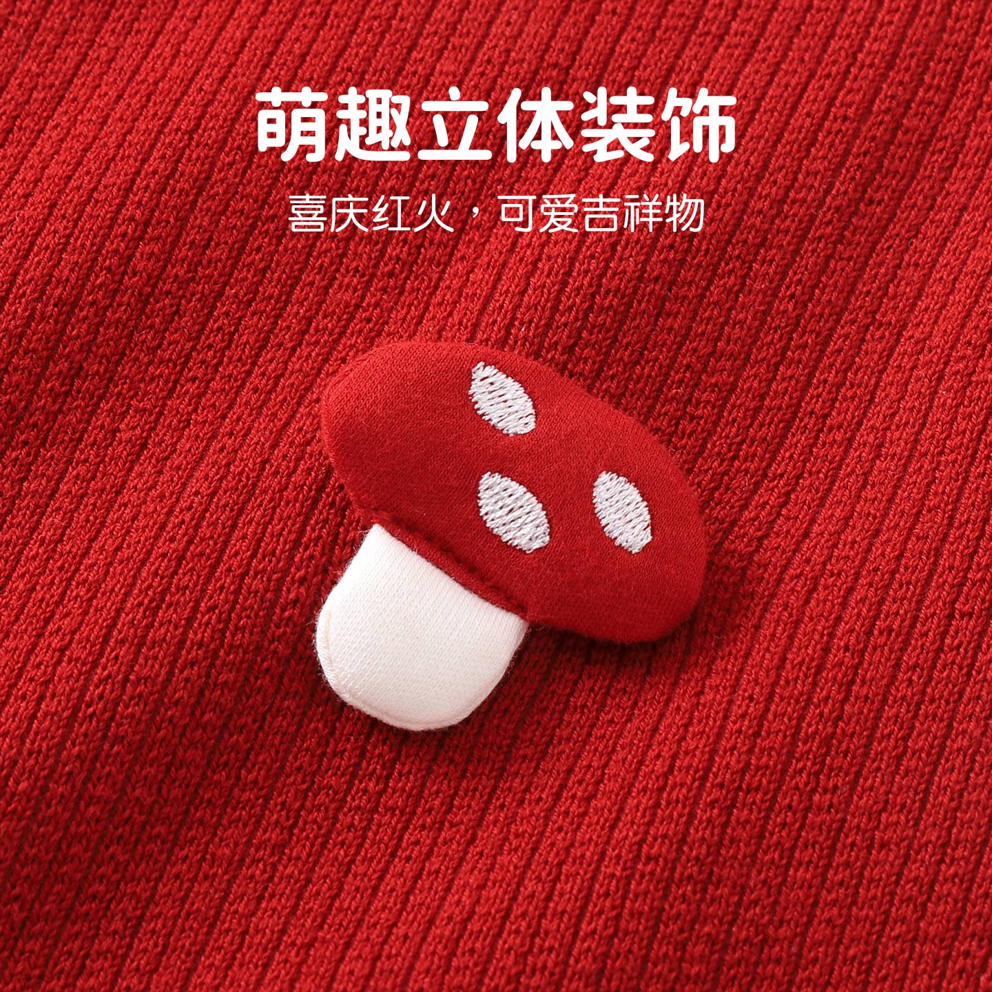 优奇婴儿连体衣春秋款长袖红色周岁爬爬服a类女宝宝满月百天哈衣