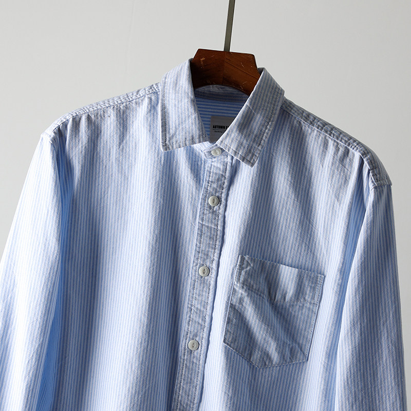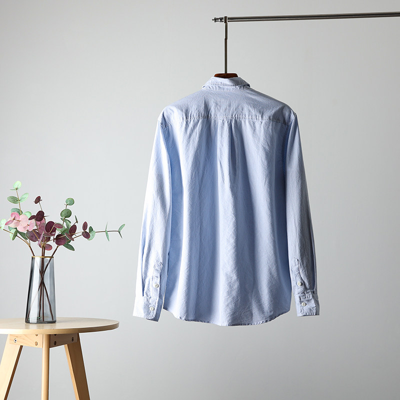 文艺竖条纹!成衣水洗!秋冬新款男士全棉牛津纺细条纹长袖衬衫潮