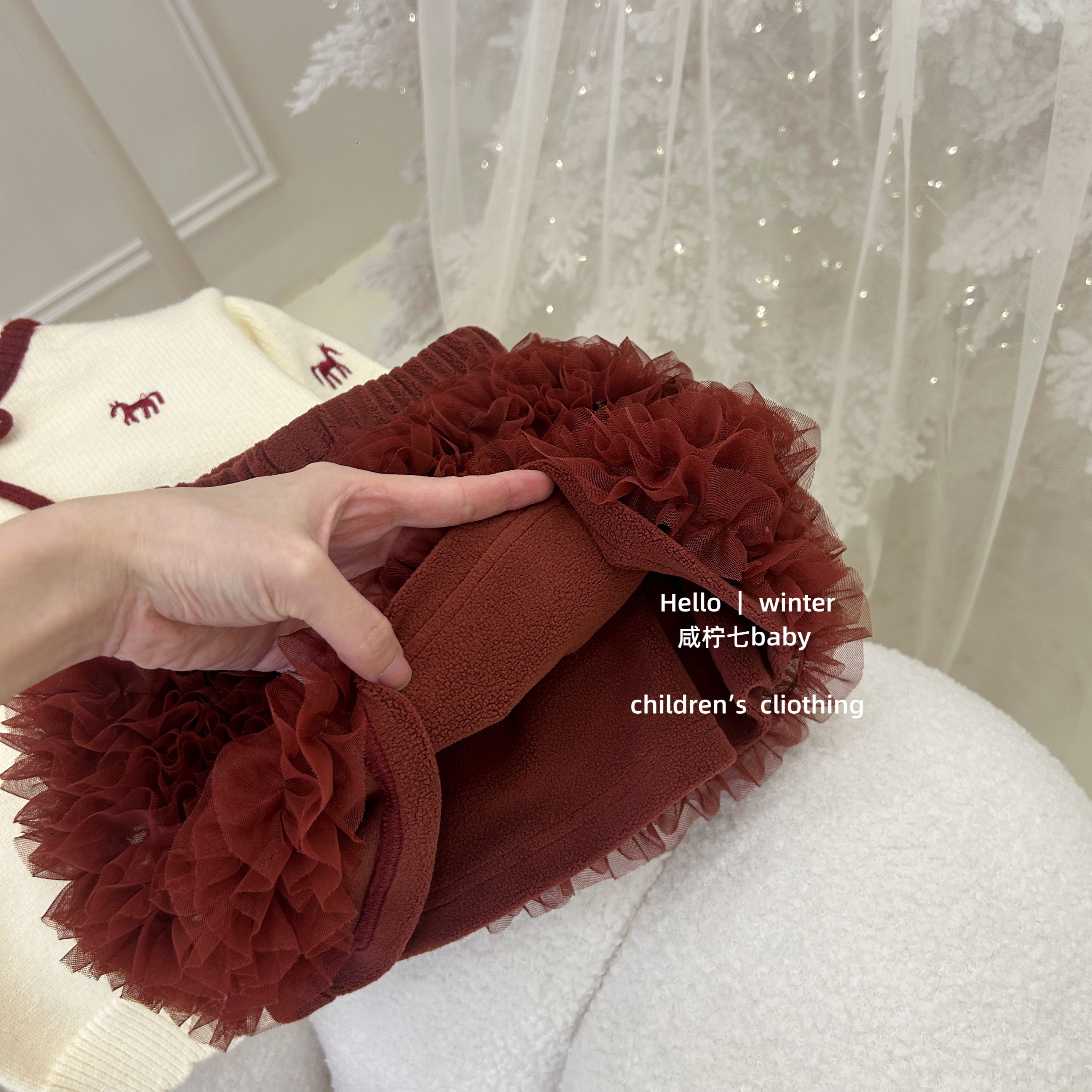 【咸柠七】原创!女童新年套装红色刺绣小马毛衣蛋糕裙tutu裙套装