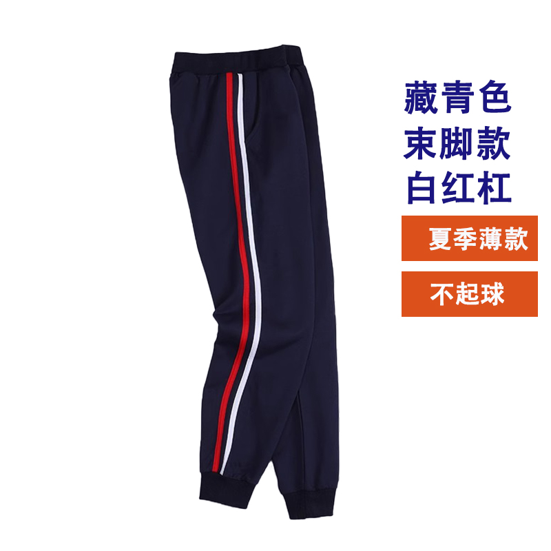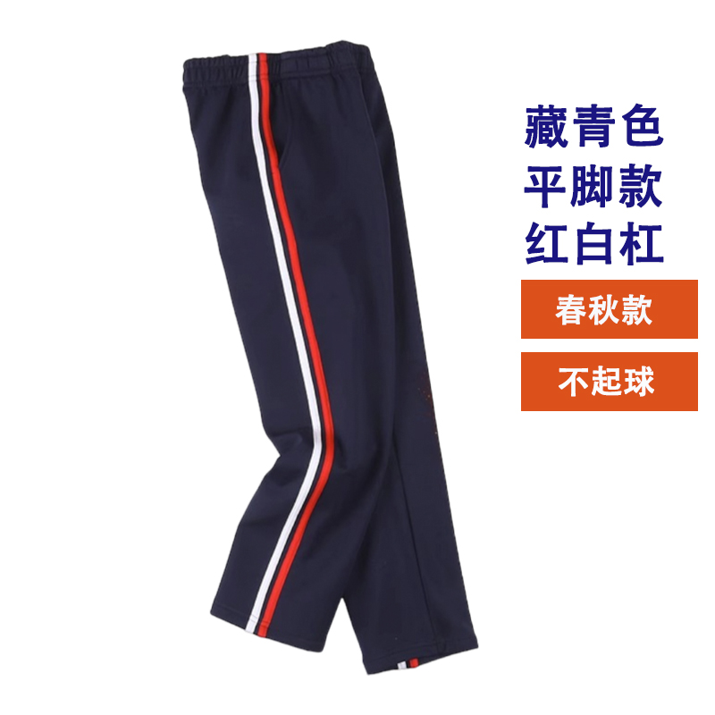藏青色校服裤二条杠春秋夏季薄款纯棉加绒小学生初中两条杠运动裤