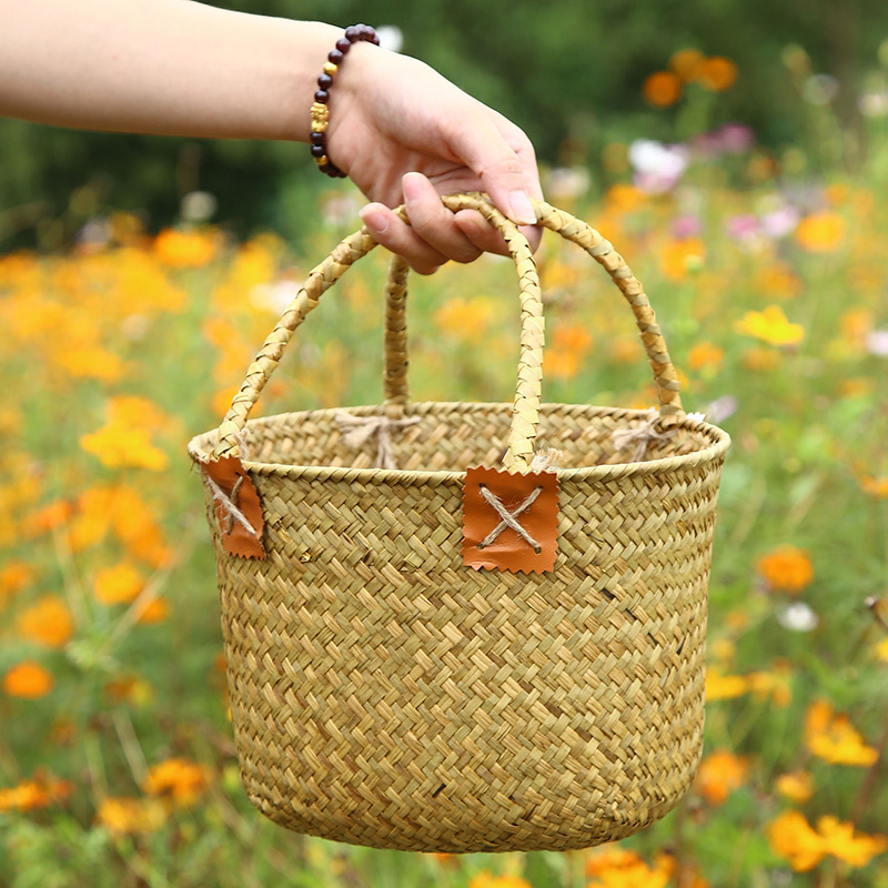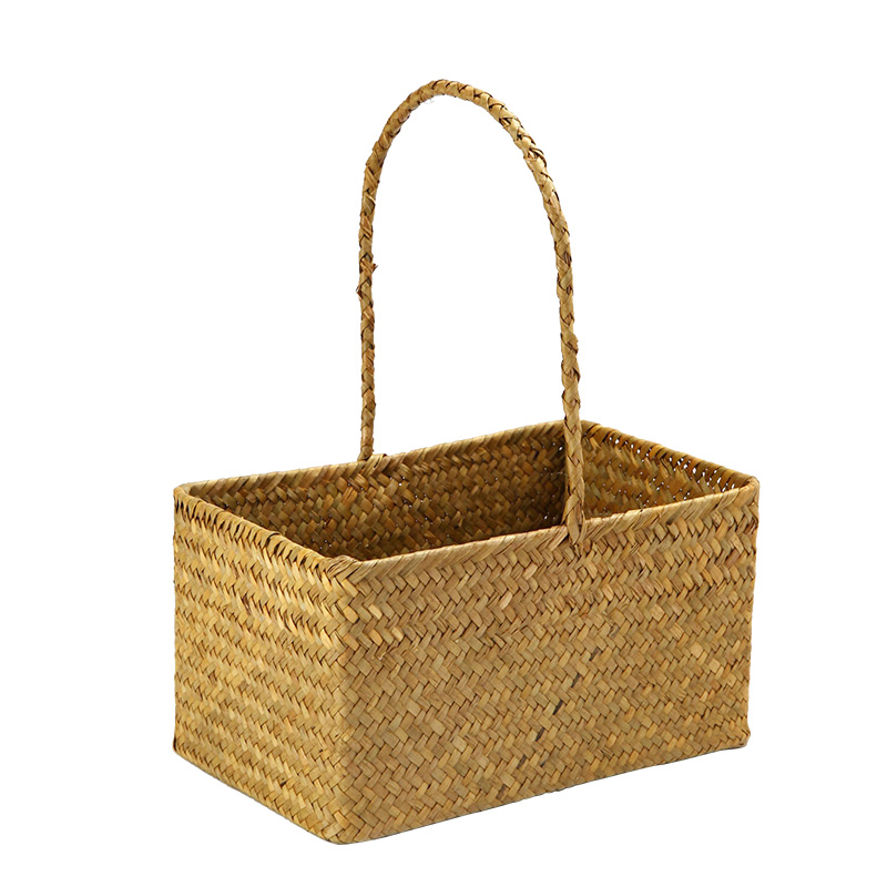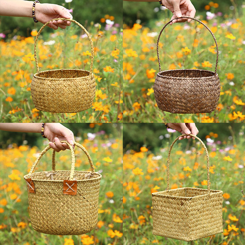 手提海草花篮竹编草编收纳盒桌面客厅收纳筐 厨房杂物篮收纳篮子