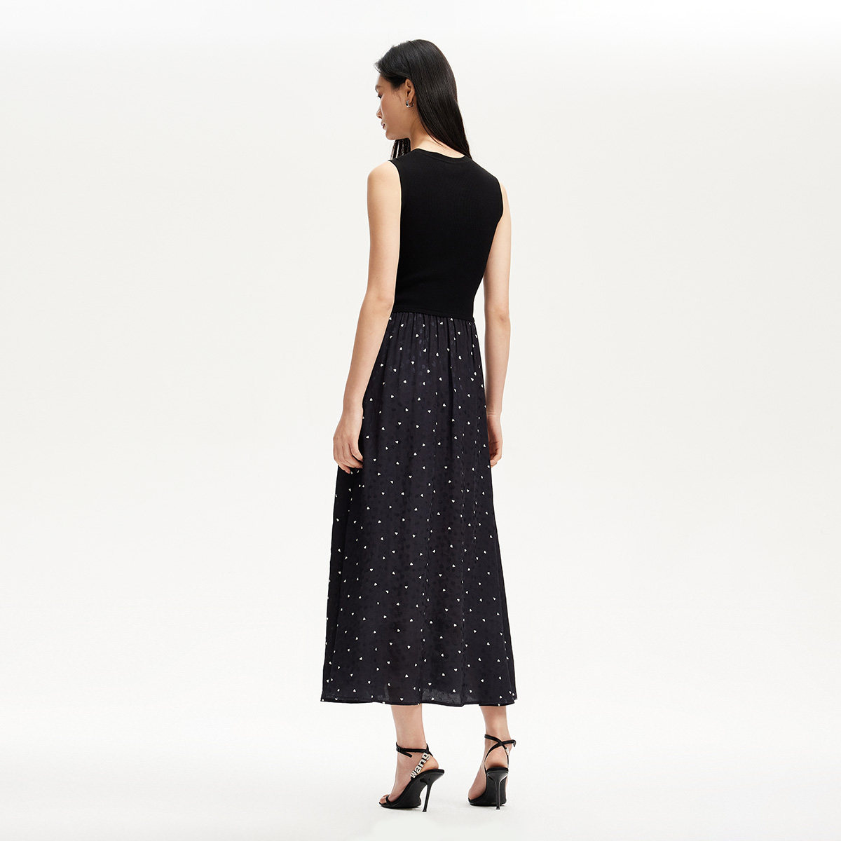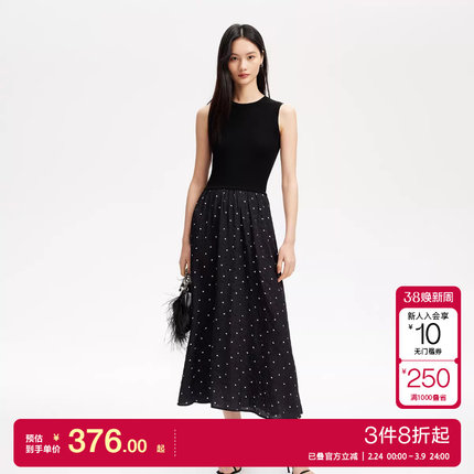 vq区绫致Vero Moda连衣裙2025春夏款爱心波点印花拼接背心长裙