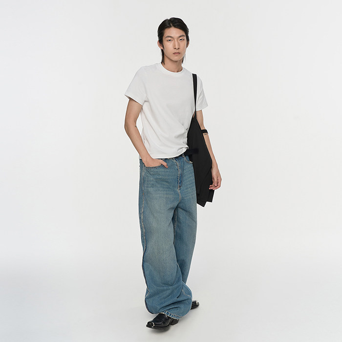 NFAI 阔腿折边牛仔裤 厚度适中/自然水洗/精选版型
